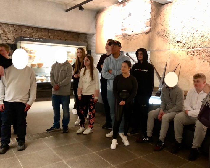 Am Donnerstag, den 20.04.2023 haben wir, die ersten Klassen der SBFW, im Rahmen unseres Projektes zum Thema „Römer“ einen Lerngang nach Ladenburg gemacht. Dort haben wir eine kombinierte Stadt- und Museumsführung gemacht. Frau Wagner vom Heimatbund Ladenburg hat uns zunächst durch die Stadt Ladenburg und zu den Relikten aus der Römerzeit geführt. Wir erfuhren, dass Lopodunum (so hieß Ladenburg in der Römerzeit) von den Römern zunächst als Holz-Erde-Kastell errichtet wurde und um 90 n. Chr. durch ein Steinkastell abgelöst wurde. Ein Teil der Mauer des spätrömischen Burgus ist bis heute erhalten geblieben, man kann jedoch auch Fundamente der römischen Basilika oder eine rekonstruierte Jupitergigantensäule bewundern. Abschließend haben wir im Römermuseum durch die dortigen Fundstücke und einen Film noch viel über die Lebensweise und Kultur der Römer erfahren: wie die Legionäre lebten, welche Kleidung sowie Waffen sie trugen, was sie aßen und was sie in ihrer Freizeit machten. Die Römerzeit wird dort wieder lebendig.