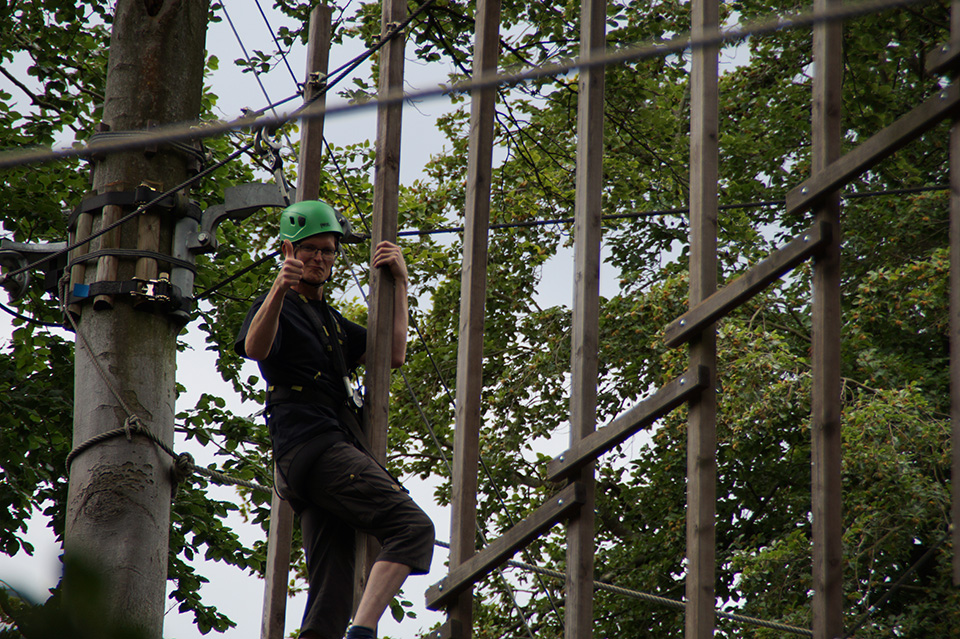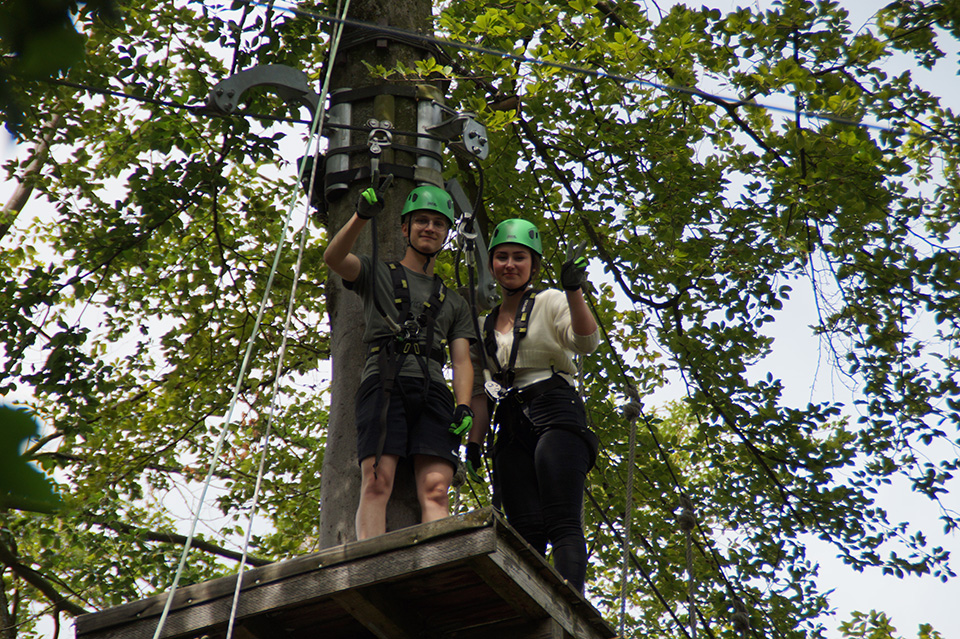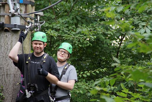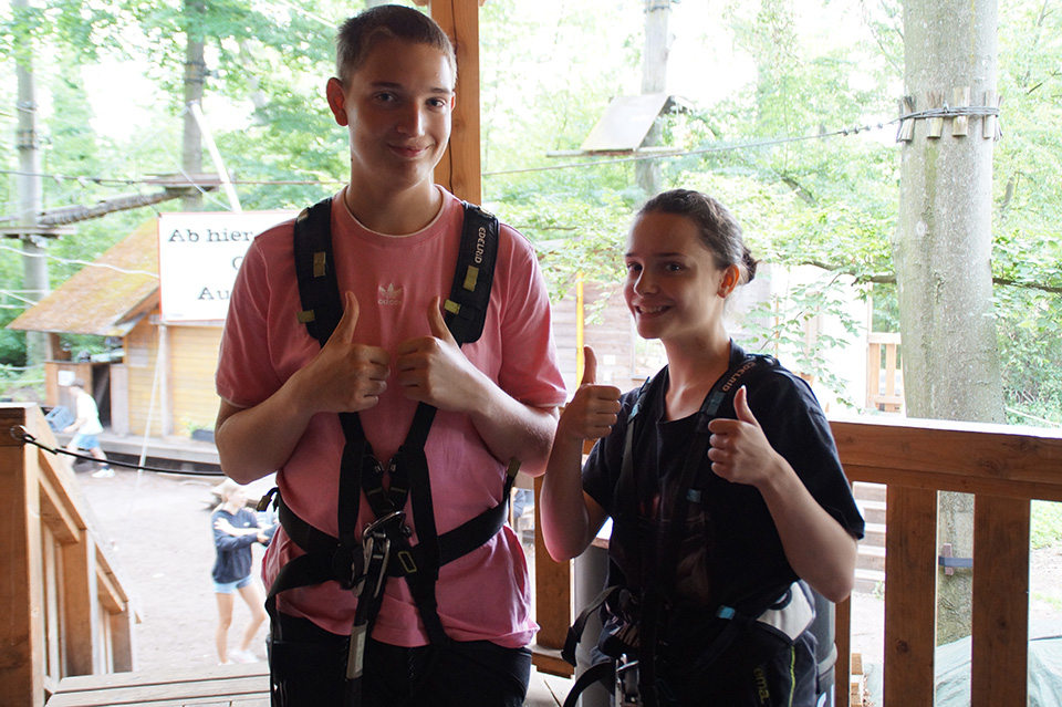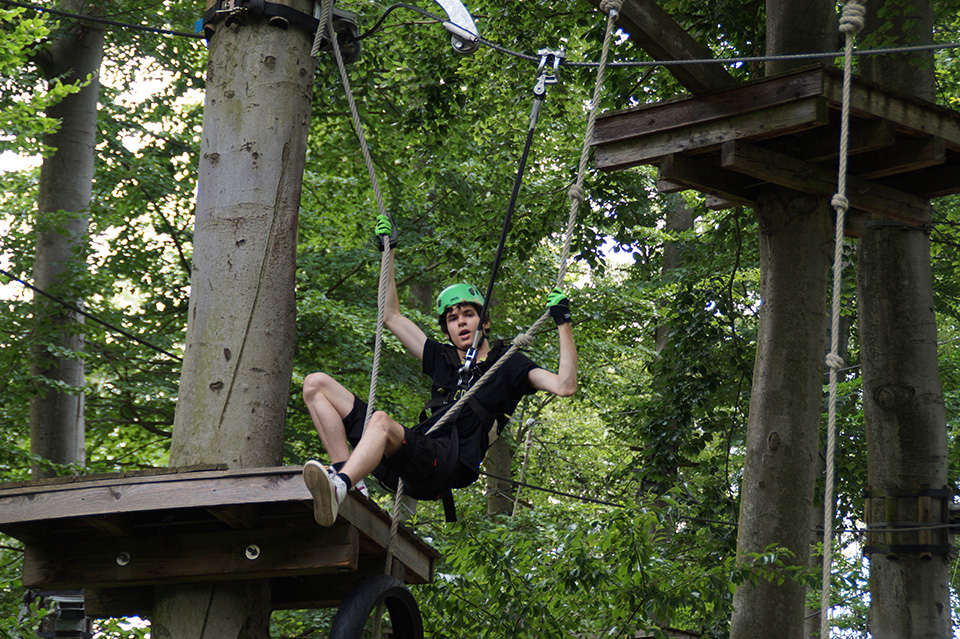 Am Donnerstag, den 27.06.2023 besuchten die Klassen 3SBFW1/1, 3SBFW2 und 3SBFW3/1 zusammen mit Frau Danzer und Herrn Klein den Kletterwald Viernheim (Forest Adventures). Wir fuhren gemeinsam mit dem öffentlichen Nahverkehr von Neckargemünd zur Haltestelle Wernherstraße Viernheim. Nach einem 10-minütigen Fußweg erreichten wir den Kletterwald. Bevor wir anfangen durften zu klettern, wurden uns passende Ganzkörpergurte sowie Helme zugeteilt. Zudem bekamen wir eine Video-Sicherheitseinweisung, in der alle Kletterregeln erklärt wurden. Endlich durften wir anfangen zu klettern! Uns standen zwölf verschiedene Parcours zur Verfügung, welche sich durch ihre Schwierigkeit, Länge und Höhe unterschieden. Außerdem gab es einige Highlights, wie die Riesenrutsche oder das Snowboard. Somit war für jeden von uns etwas dabei. Nachdem wir drei Stunden klettern waren, fuhren wir glücklich, aber müde wieder zurück nach Neckargemünd.