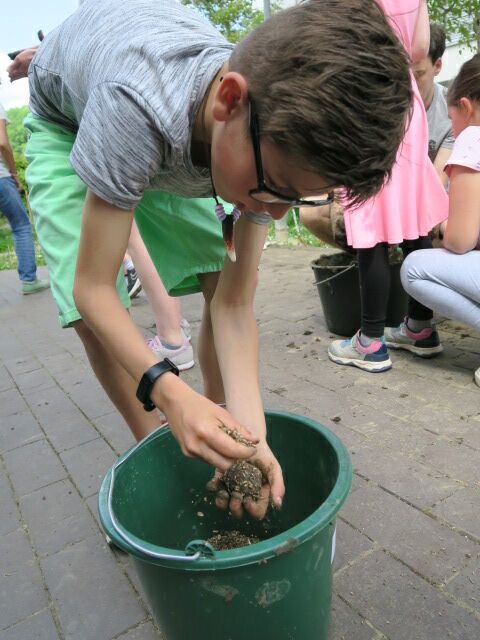 Ein besonderes Highlight für die Schülerinnen und Schüler war das Herstellen eigener Samenbomben aus nassem Lehm und Samenmischungen, die die Kinder mit nach Hause nehmen durften. Jetzt warten sie gespannt darauf, dass aus den kleinen Samen Blumen wachsen!