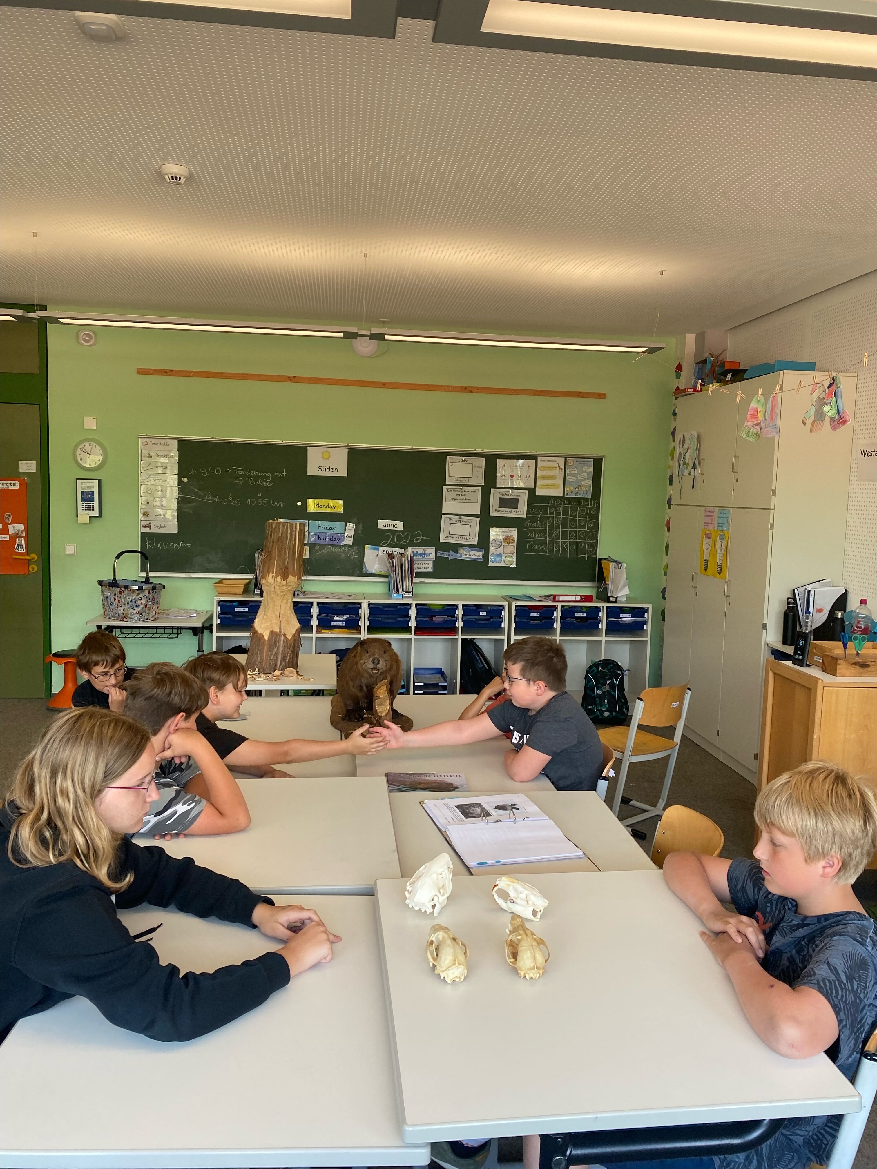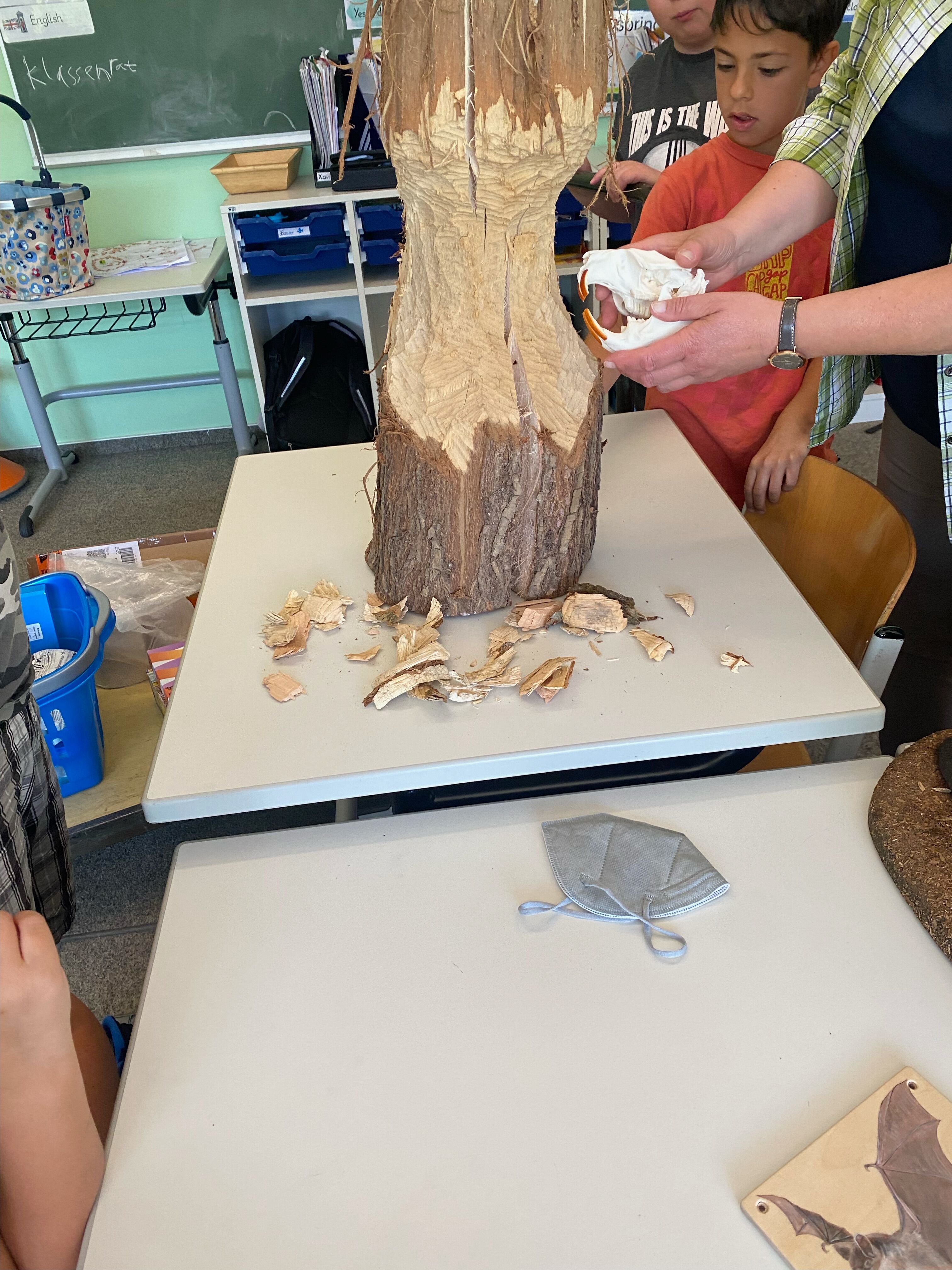 Die Klasse 4b hat von der ehrenamtlichen Biber-Beraterin Susanne Kaiser-Schmitt Besuch erhalten. Mitsamt Biber und Baumstamm kam sie zu uns an die Luise und hat verkündet: Der Biber ist da.