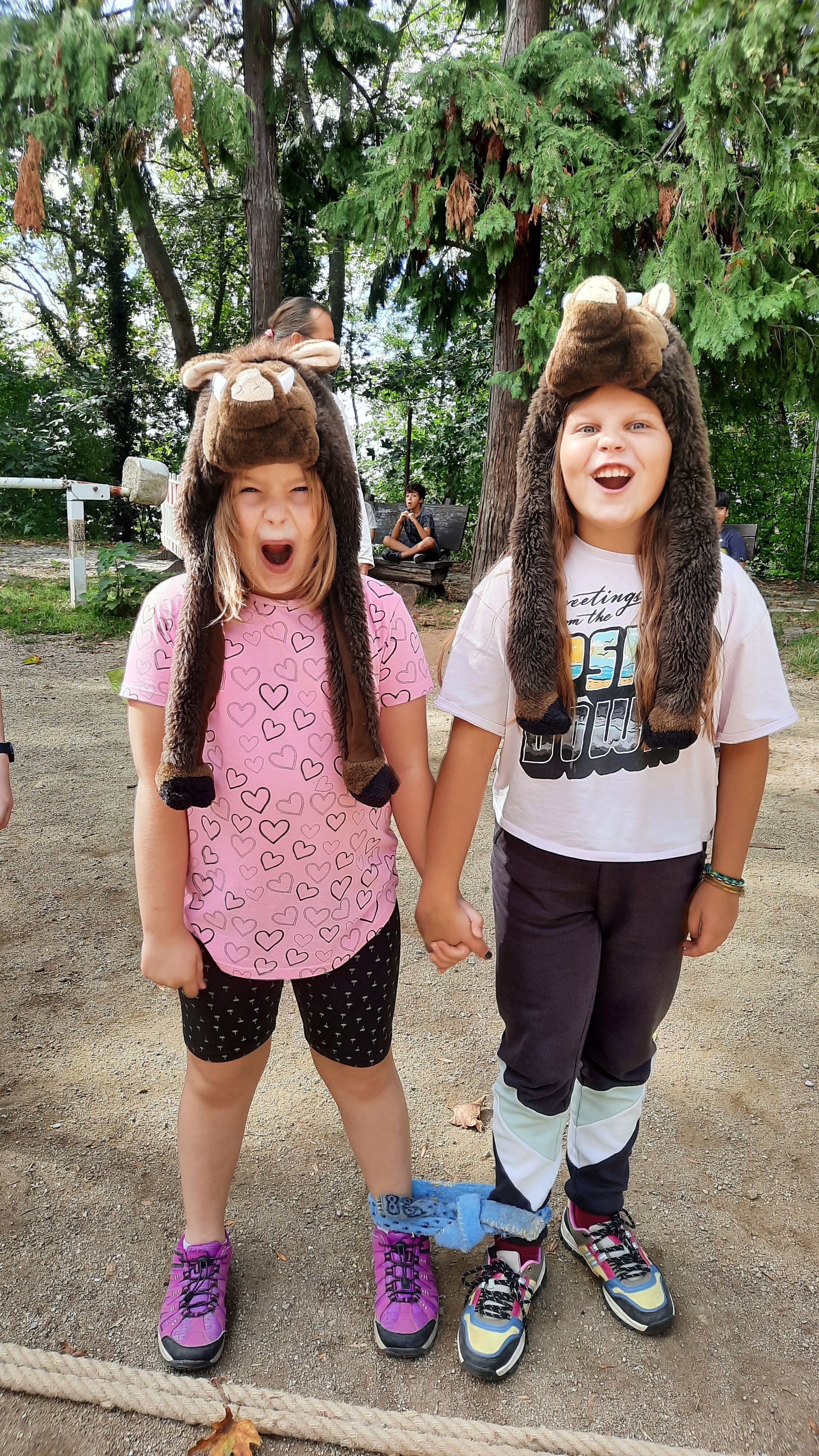 • wir ein Schlangenrennen mit lustigen Kopfbedeckungen gemacht haben.