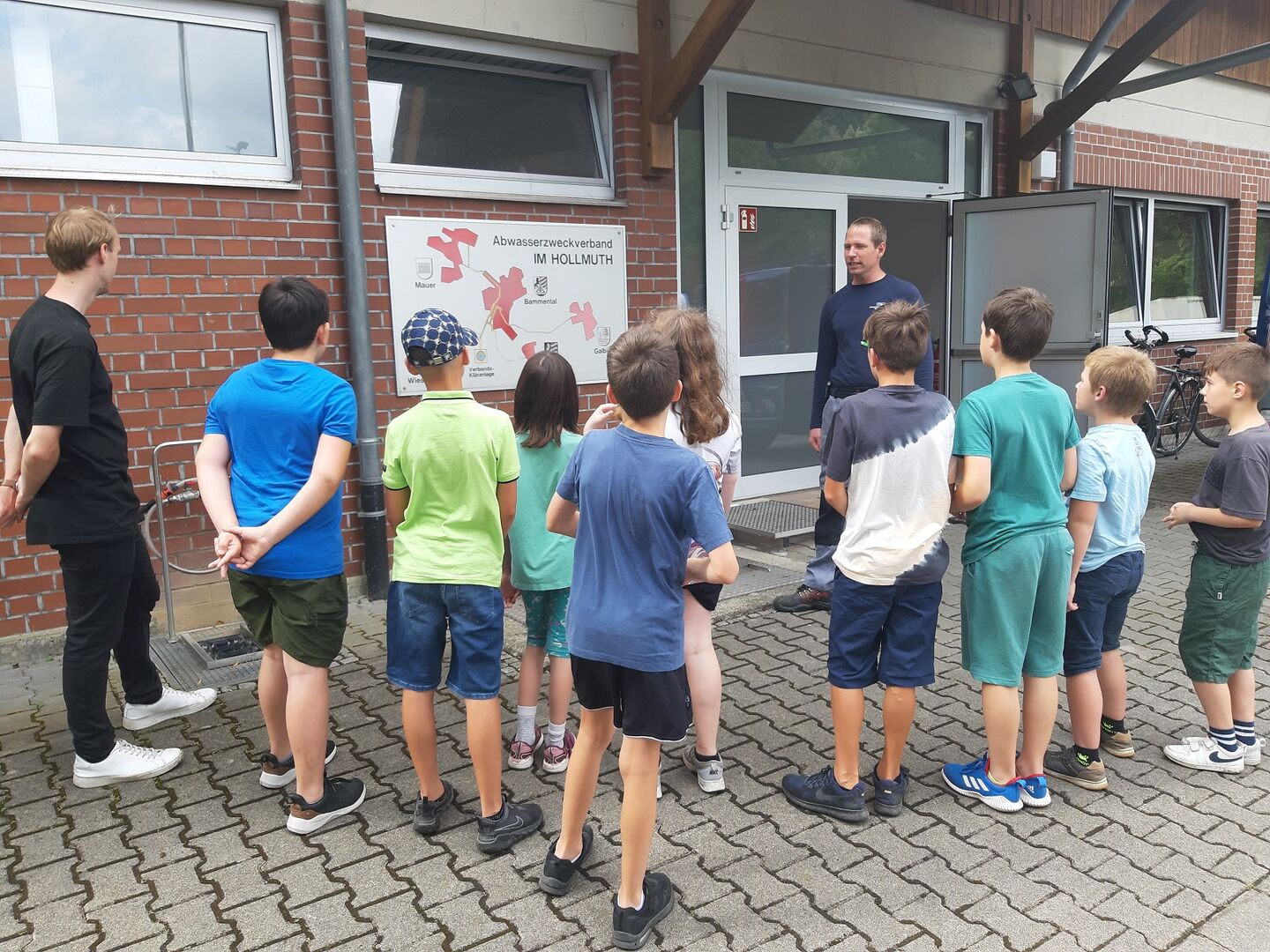 Nachdem sich die Klasse 4a bereits im Sachunterricht unter dem Rahmenthema "Wasser" mit der Funktionsweise einer Kläranlage auseinandergesetzt hatten, besuchte sie mit großer Neugier die Kläranlage des Abwasserzweckverbands "Im Hollmuth".