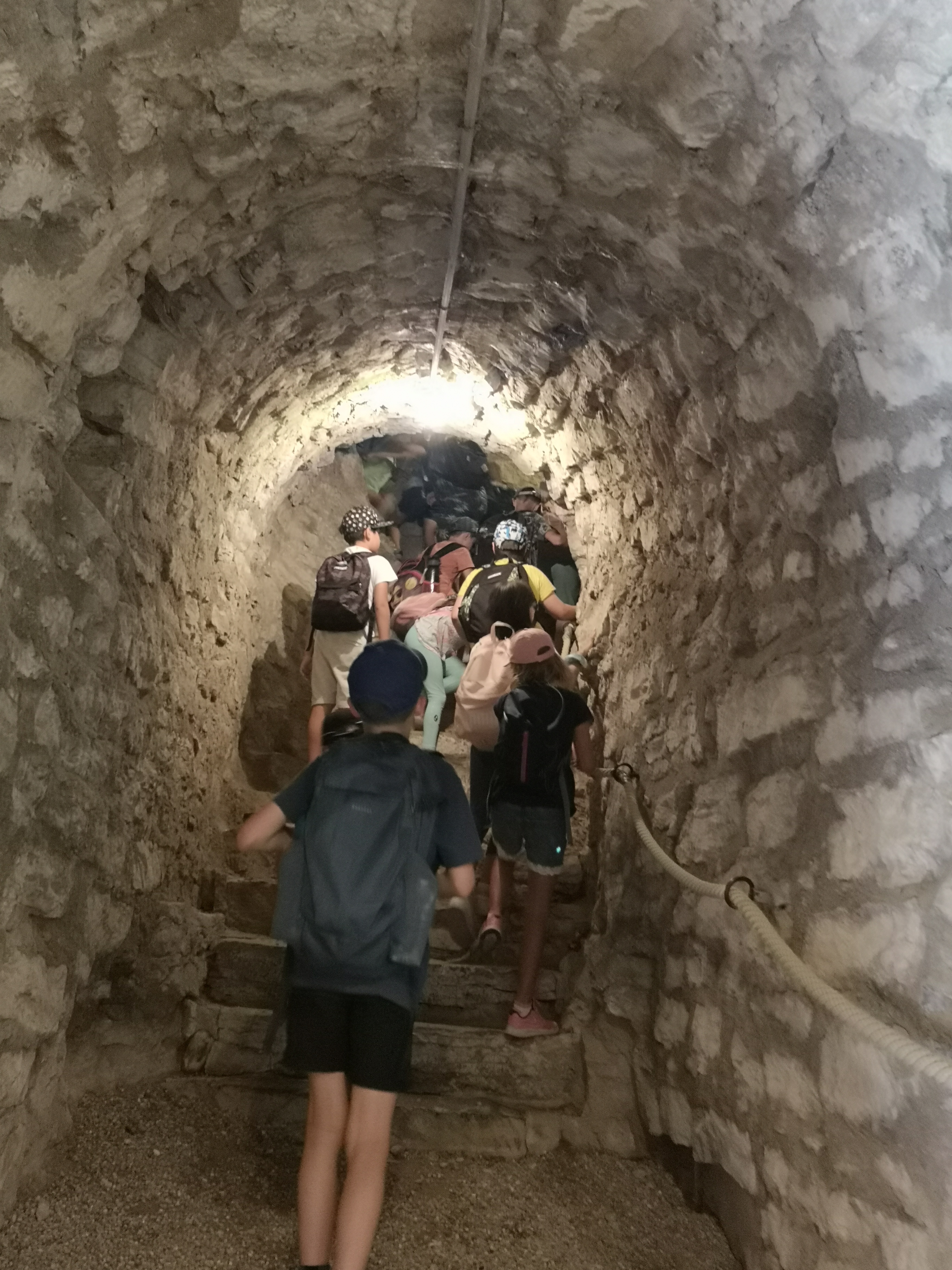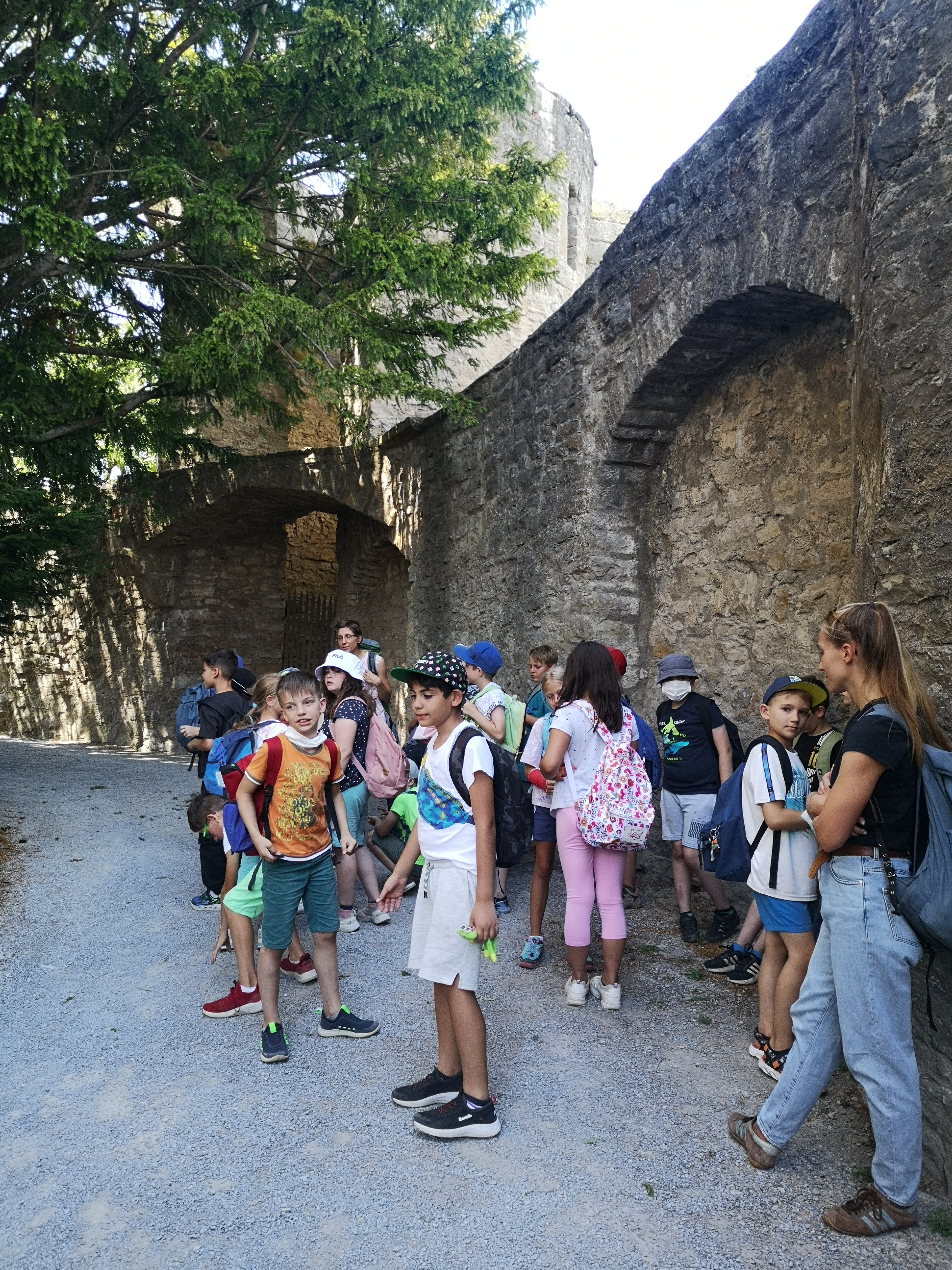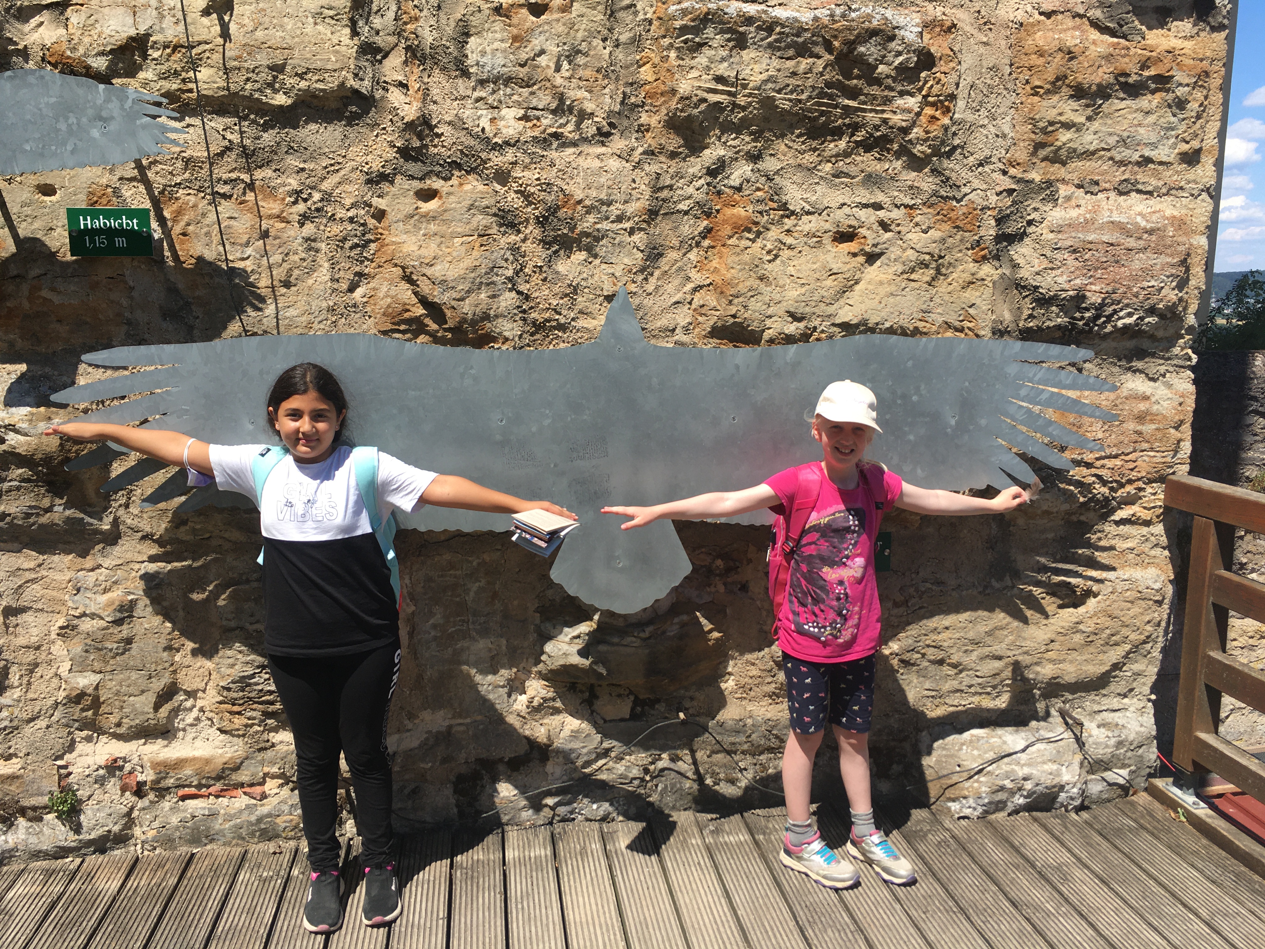 Dann sind wir einen Rundgang um die Burg gelaufen, wo wir Greifvögel gesehen haben, die in einem Gehege gesessen sind. Die Greifvögel sahen groß und gefährlich aus, aber manche auch süß. Danach haben wir uns die Burg von innen angeschaut. Es gab einen Ritter auf einem Pferd, ein Schlachtfeld mit Geräuschen aus Plastikfiguren, viele Legoburgen und ein Plumpsklo. Wir konnten auch auf einen Turm gehen und von oben auf die Burg schauen.