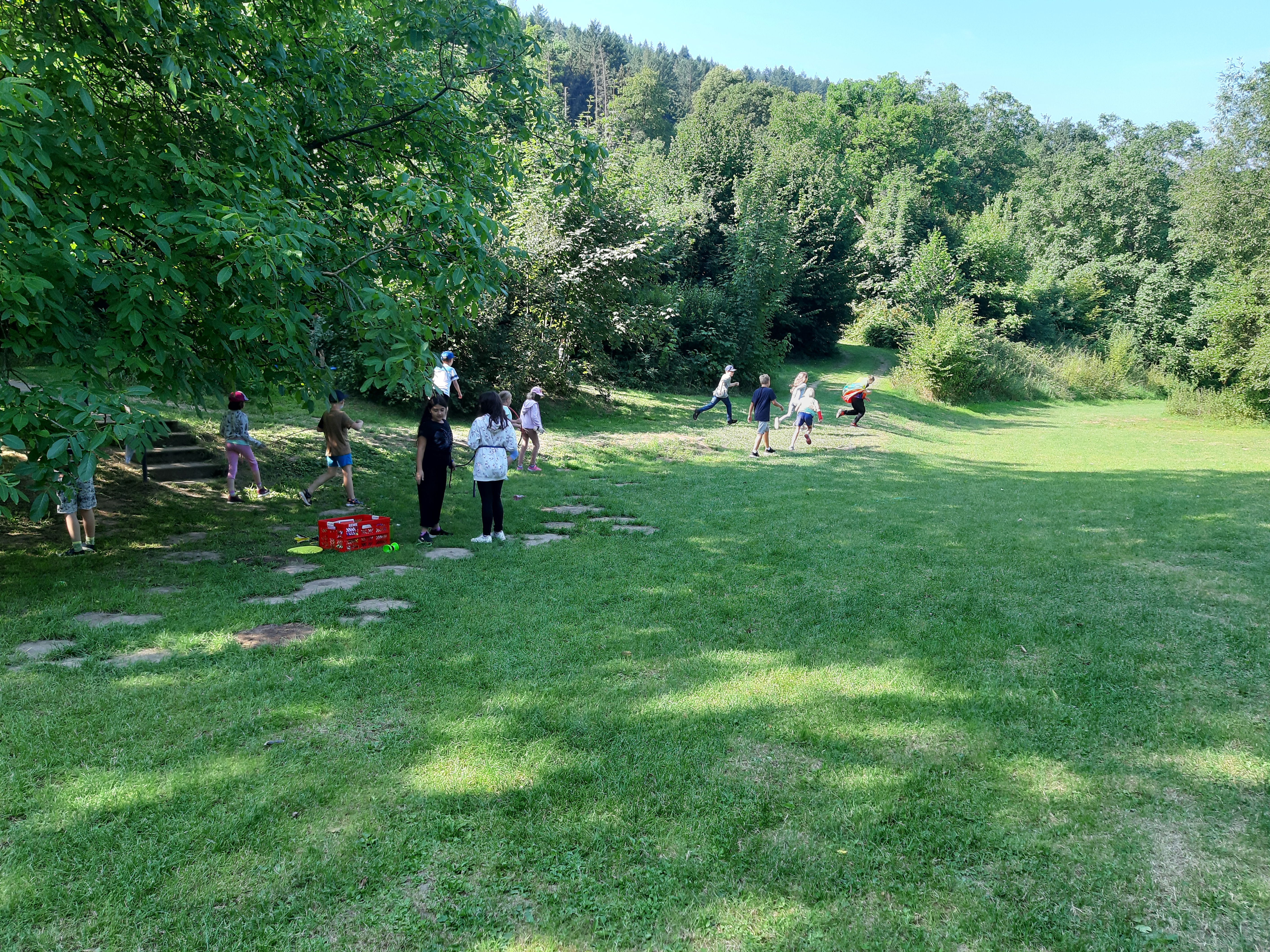 Am ersten Tag haben wir die Zimmer bezogen und die Betten gemacht. Unser Haus war direkt am Neckar. Wir konnten auf einer Wiese neben dem Neckar Spiele spielen.