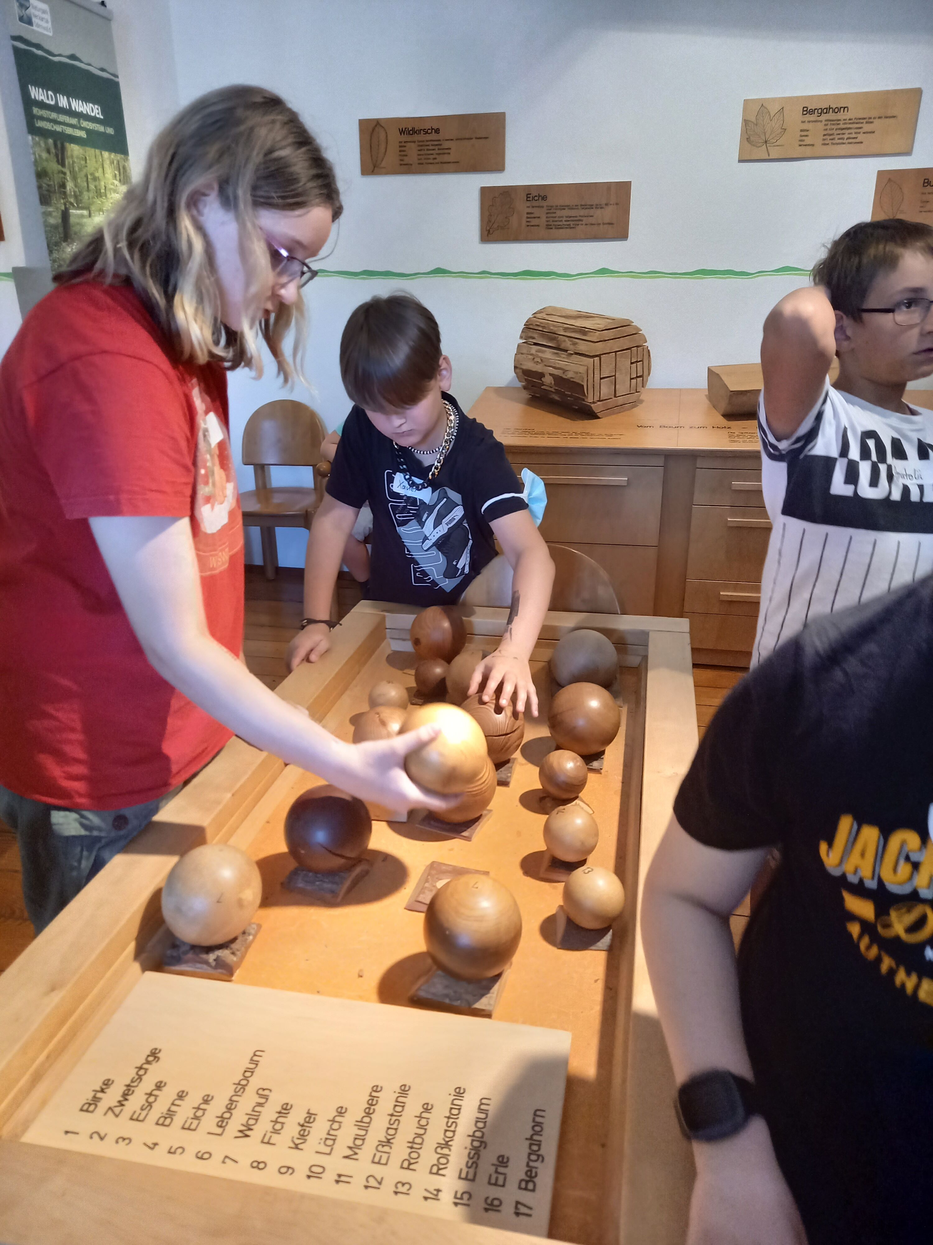 Wir konnten verschiedene Holzsorten anfassen. Dabei haben wir gelernt, dass Holz unterschiedlich schwer ist.