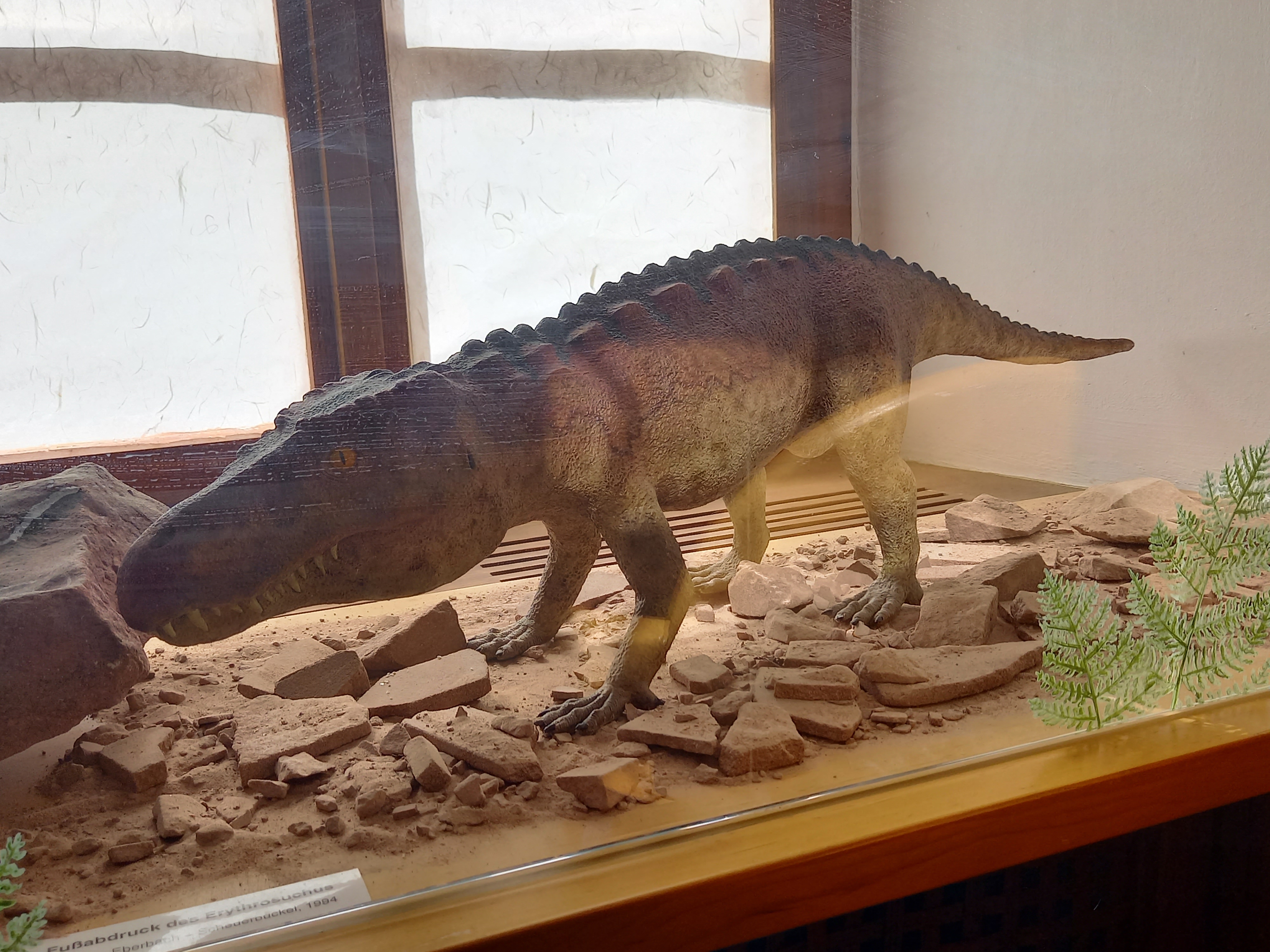 Wir haben etwas über die Urzeit gelernt. In Baden-Württemberg gab es einen Vulkan, den Katzenbuckel. Heute kann er nicht mehr ausbrechen. Früher lebte hier das „rote Krokodil“, das war über 6m lang und 1m hoch.