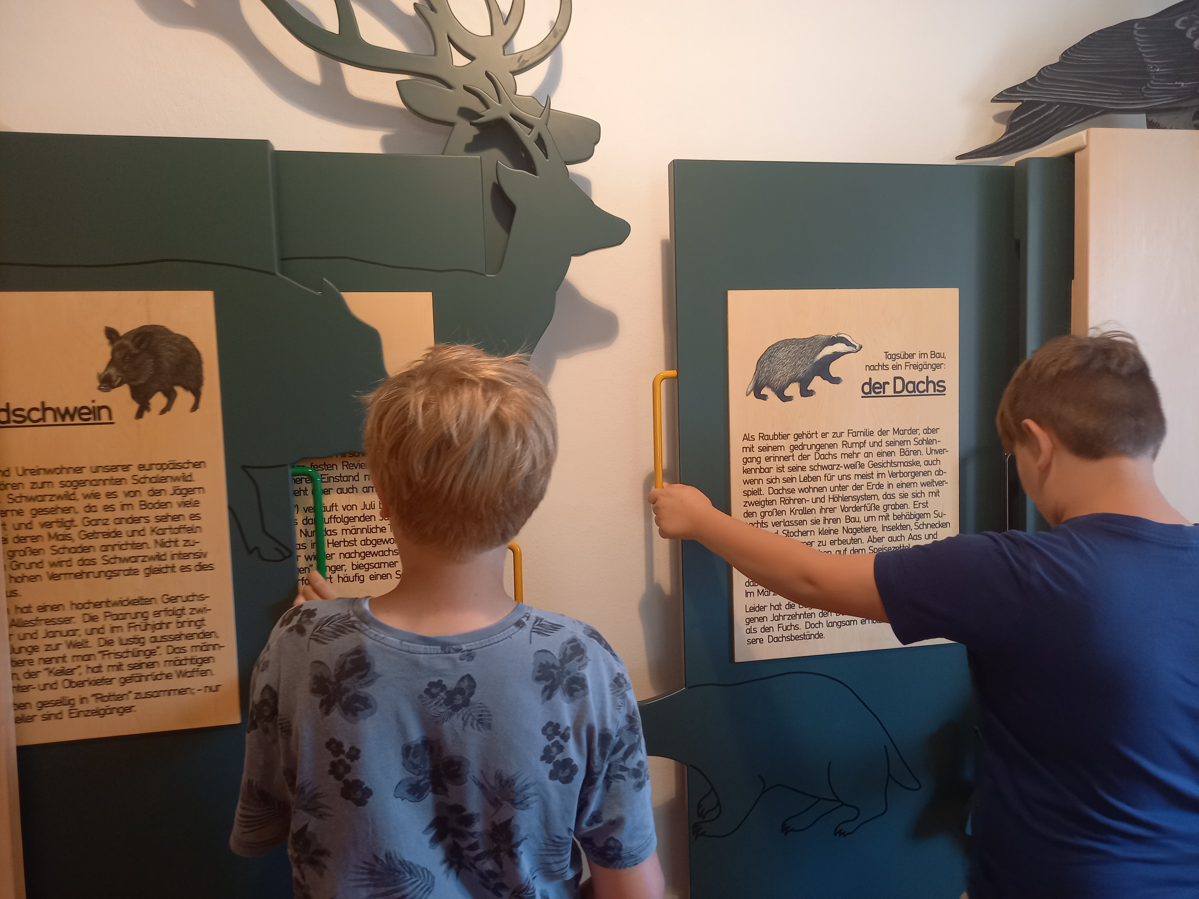 Im Naturparkzentrum hat uns Susanne begrüßt und uns die Ausstellung über Wölfe und über andere Tiere in Baden-Württemberg gezeigt.