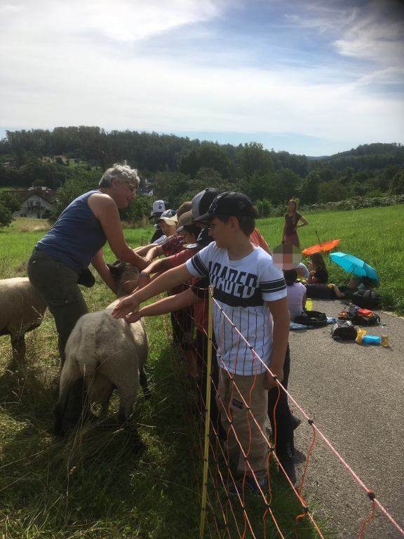 Es war schön bei den Schafen. Wir hatten keinen Unterricht, haben aber viel über Schafe gelernt.