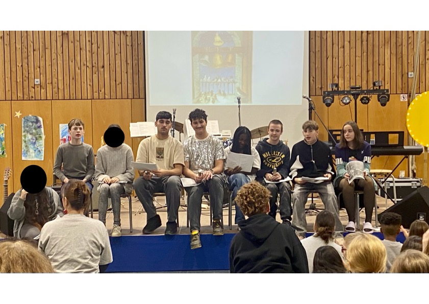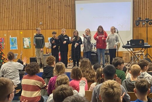 Das Lied war die perfekte Überleitung zum thematischen Einstieg in die Andacht, moderiert von Schülerinnen und Schüler der Klasse drei.