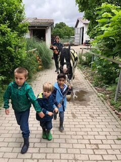 Das Projekt „Kooperation Reiterhof Astor“, wurde im Juni 2021 in Angriff genommen und mit der finanziellen Unterstützung der Sportjugend Heidelberg in die Tat umgesetzt. Wir sind der Sportjugend Heidelberg sehr dankbar, dass sie uns als Pilotprojekt angenommen hat. Die Tigerenten machten sich fünf Wochen lang jeden Donnerstag auf, um nach Heidelberg zum Reitgestüt Astor zu fahren. Hier begrüßten uns die Eigentümerin Barbara Astor und die Reittherapeutin Lena mit den Hunden Smartie und Pino immer mit offenen Armen. Wir ließen den Schulkindergartenalltag hinter uns und begaben uns in eine neue aufregende Welt.
