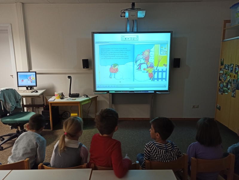 Gemeinsam mit allen Kindern können wir jetzt Bilderbücher anschauen und mit ihnen interaktiv arbeiten. Details werden vergrößert oder markiert, dazu passende Geräusche angehört oder kurze Animationen zur Veranschaulichung betrachtet.