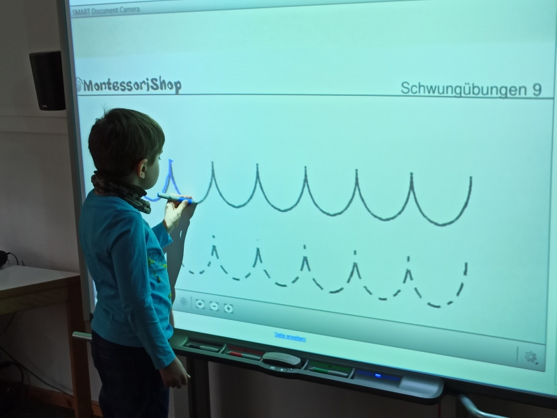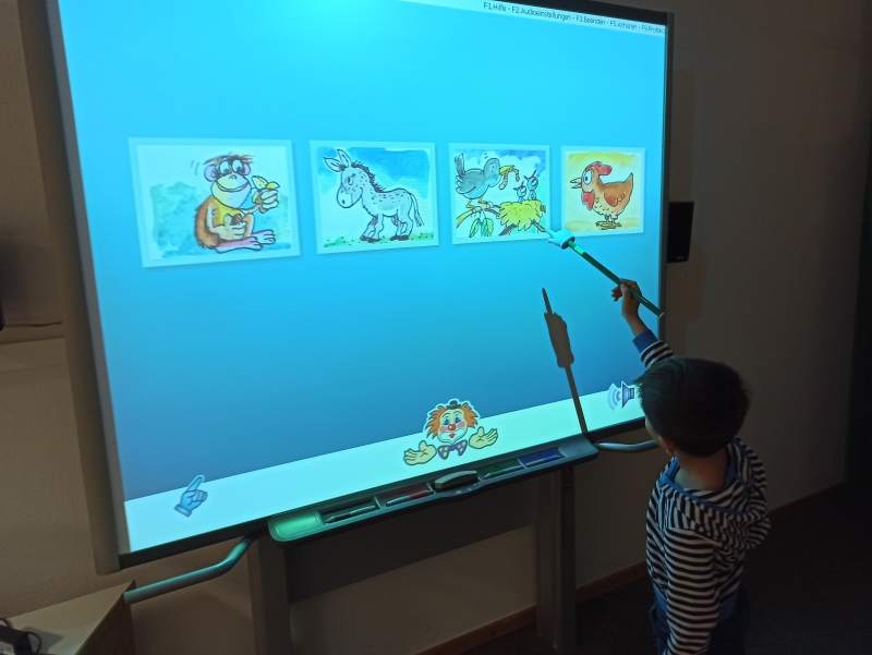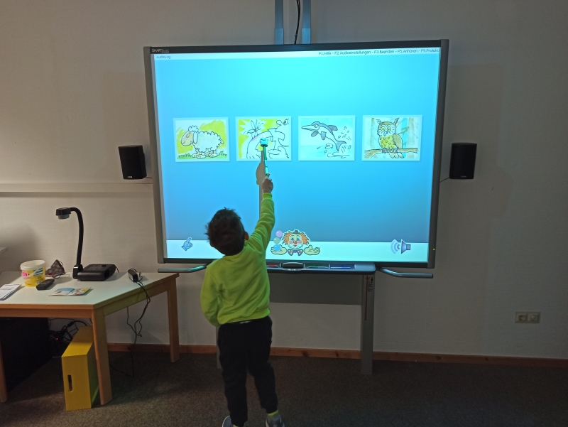 Nachdem wir im Schulkindergarten bereits seit längerem Förderung mit dem iPad anbieten, sind nun auch interaktive Tafeln im Einsatz.