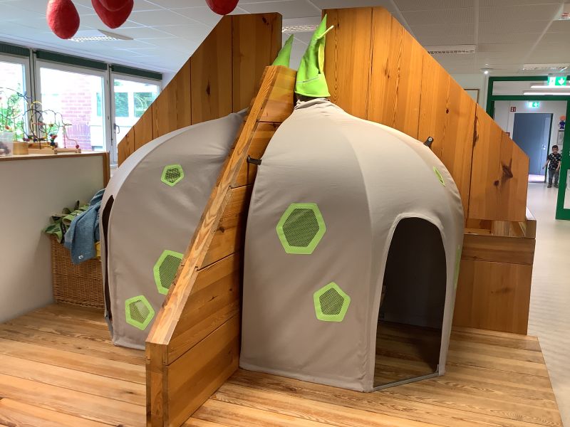 Im ersten Stock unseres Schulkindergartens gibt es etwas Neues. In einem Spielturm und zwei Höhlen können die Kinder klettern und sich verstecken. Nicht nur draußen auf dem Spielplatz, sondern jetzt auch drinnen treffen sich die Kinder aus verschiedenen Gruppen, planen Spiele und haben die Möglichkeit, einfach mal zu verschwinden. Manchmal ruhen sie sich auch nur aus. Diese Möglichkeiten sind eine große Bereicherung für die Kinder und das Team des Schulkindergartens. Wir danken dem Elternbeirat, dem wir zu Beginn des Schuljahres unsere Ideen vorstellen durften und dem Förderkreis des SBBZ Luise von Baden für die großzügige finanzielle Unterstützung.