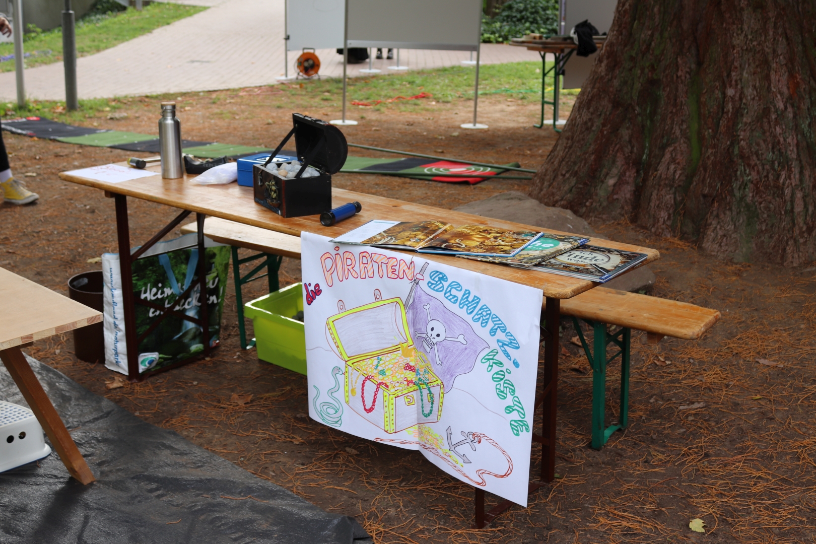Ein ebenso stimmungsvoller wie humorvoller Festakt führte alle Anwesenden schließlich zur Schiffstaufe. Damit war das Fest eröffnet und die hungrigen Piraten, Groß und Klein, freuten sich über 1001 Köstlichkeiten. So gestärkt konnten dann die vielen Spielangebote und Stände ausprobiert und genossen werden. Es wurde gebastelt, gefädelt, gemalt, gebaut, geschätzt, gespielt, gezielt, fotografiert, gejagt… eben alles, was Piraten bei Laune hält.