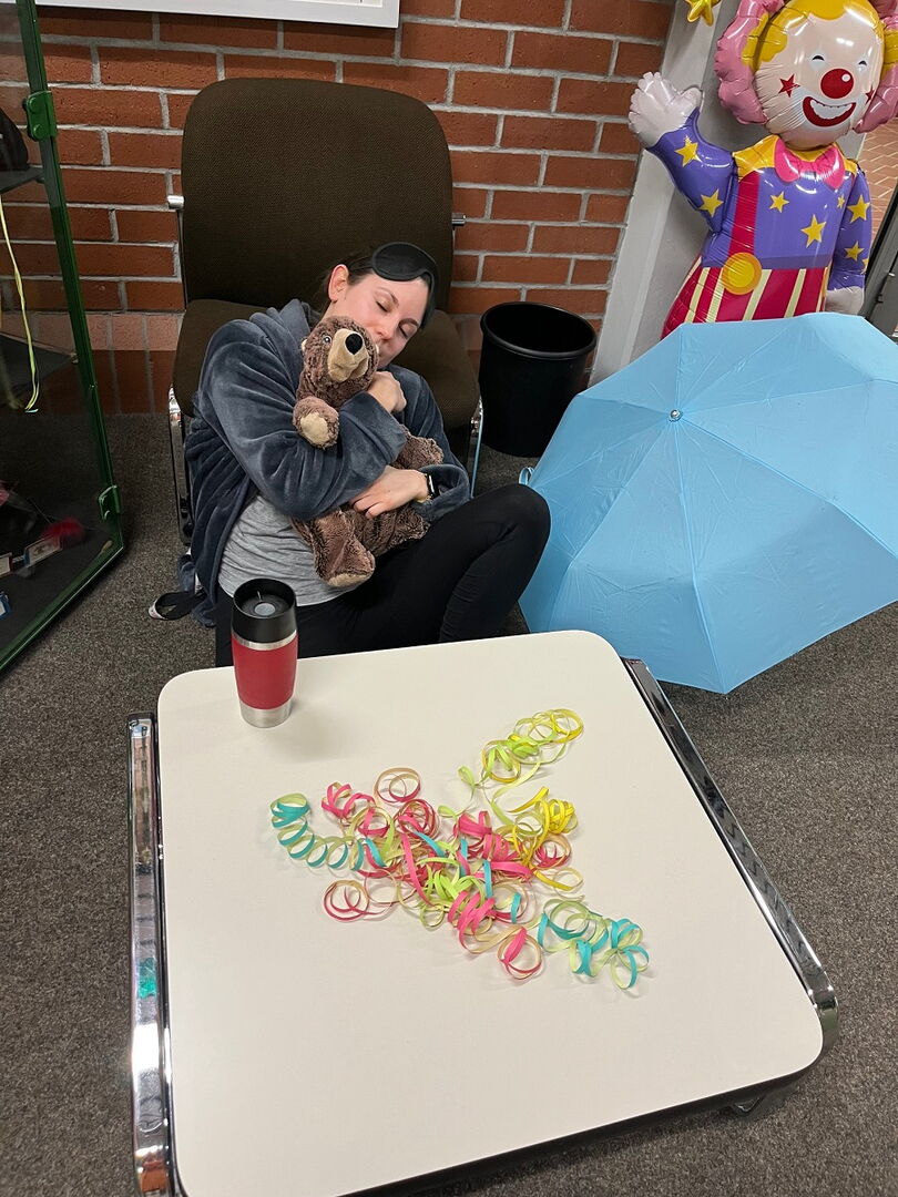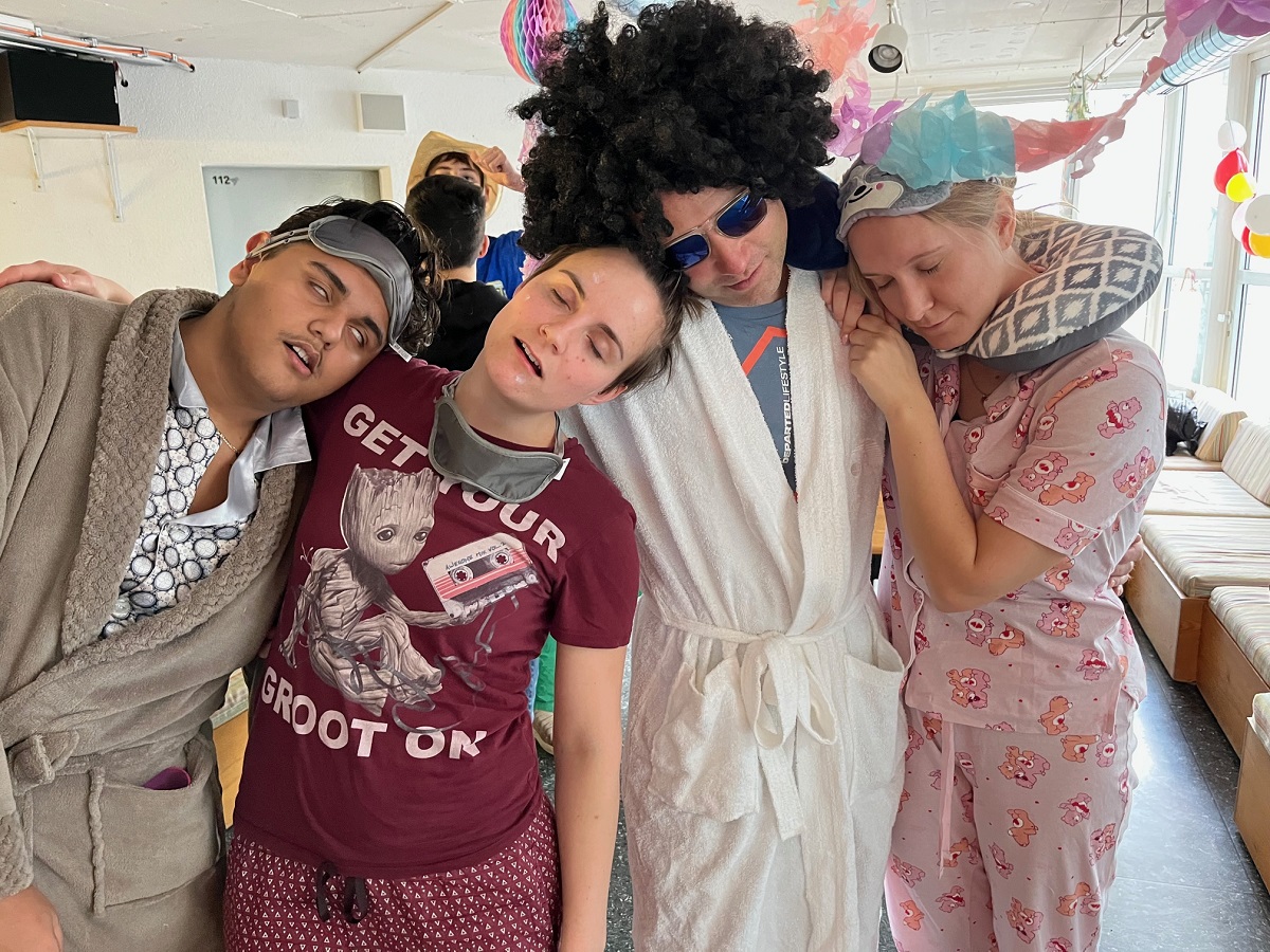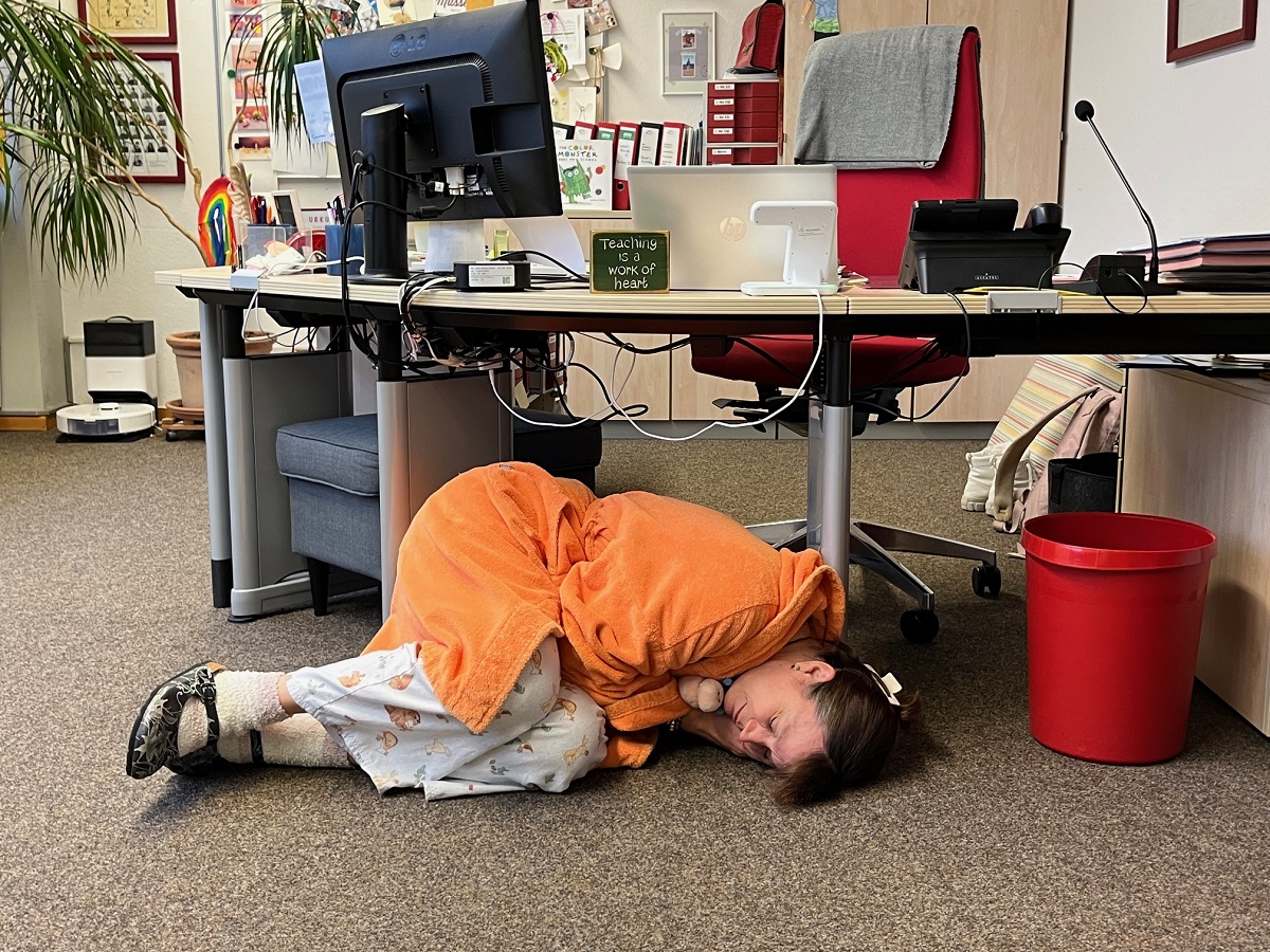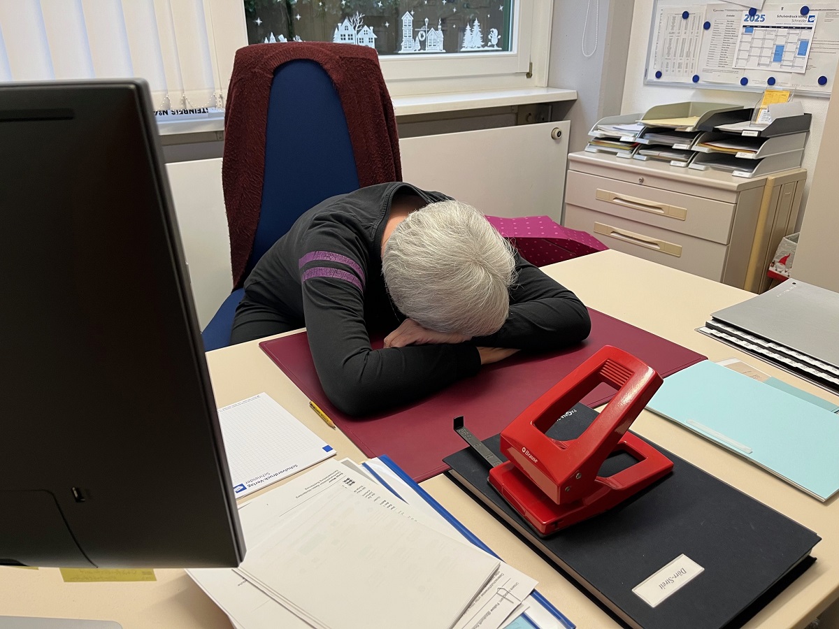 Schließlich ging es am Donnerstag an der gesamten Einrichtung gänzlich verschlafen zu und es kam zu unerhörten Zuständen (siehe Fotobeweise). Der müde Haufen an der Luise kam erst bei der Faschingsparty so richtig in Schwung. Diese wurde von den achten Klassen organisiert. Das Gute war, dass sich kein Mensch Gedanken machen musste über die richtige Kleidung, da sich einfach alle aus dem Bett direkt in die Schule begeben konnten, um sich dann am Nachmittag unverändert in die Federn fallen zu lassen.