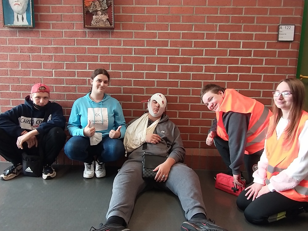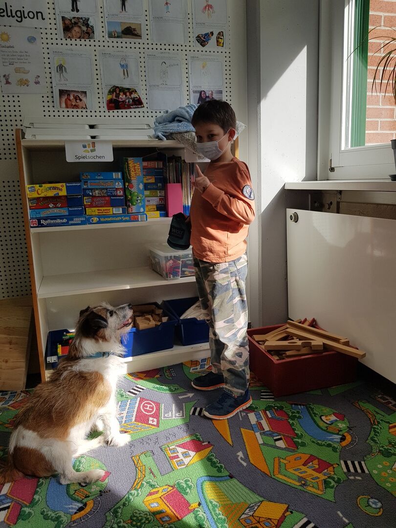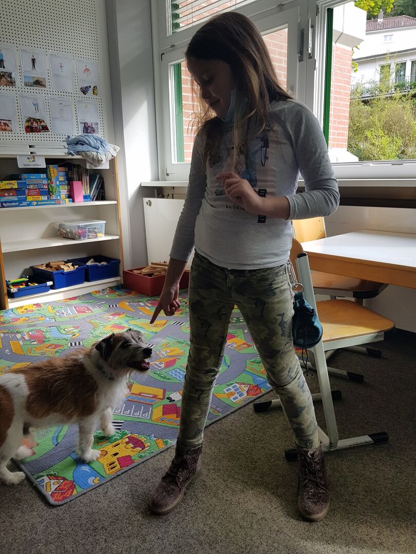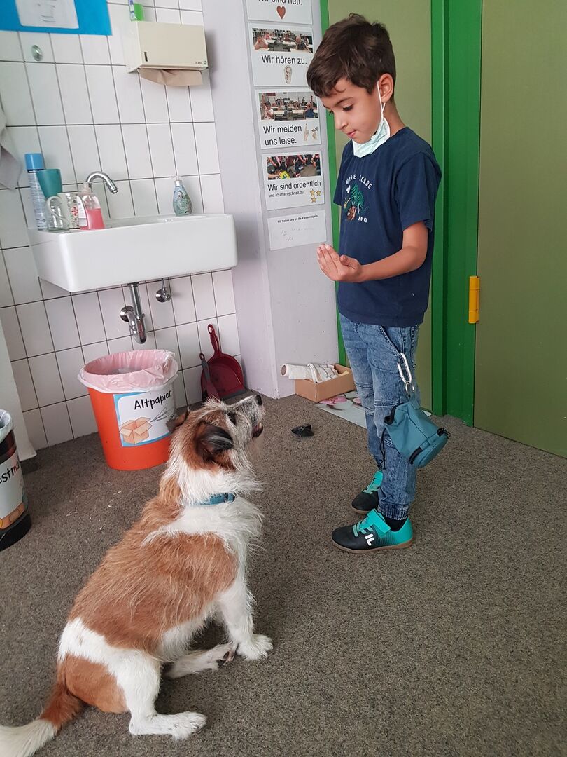 Der richtige Umgang im Notfall wird in „Einblick in den Schulsanitätsdienst“ gelernt. Mit „Nicky“ (rauhaariger Jack Russel Terrier) werden Grundkommandos mit Handzeichen in „Kunterbunt mit Hund“ geübt.