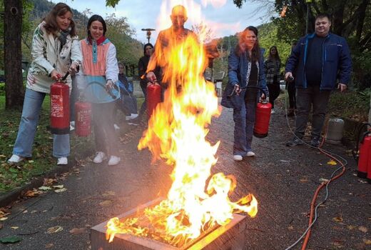 Alle Mitarbeitenden an der Luise nahmen an dem Feuerlöschtraining teil.