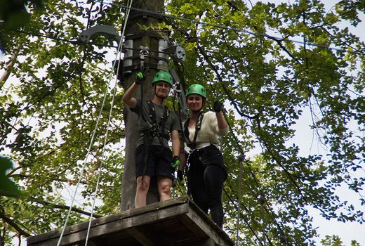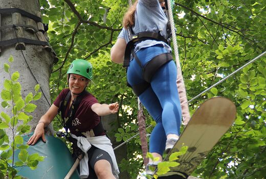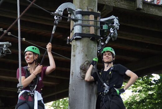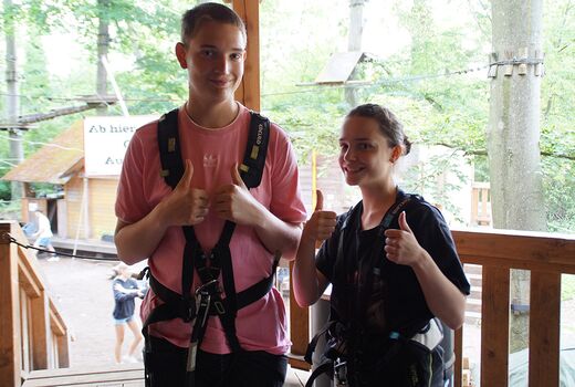 Am Donnerstag, den 27.06.2023 besuchten die Klassen 3SBFW1/1, 3SBFW2 und 3SBFW3/1 zusammen mit Frau Danzer und Herrn Klein den Kletterwald Viernheim (Forest Adventures). Wir fuhren gemeinsam mit dem öffentlichen Nahverkehr von Neckargemünd zur Haltestelle Wernherstraße Viernheim. Nach einem 10-minütigen Fußweg erreichten wir den Kletterwald. Bevor wir anfangen durften zu klettern, wurden uns passende Ganzkörpergurte sowie Helme zugeteilt. Zudem bekamen wir eine Video-Sicherheitseinweisung, in der alle Kletterregeln erklärt wurden. Endlich durften wir anfangen zu klettern! Uns standen zwölf verschiedene Parcours zur Verfügung, welche sich durch ihre Schwierigkeit, Länge und Höhe unterschieden. Außerdem gab es einige Highlights, wie die Riesenrutsche oder das Snowboard. Somit war für jeden von uns etwas dabei. Nachdem wir drei Stunden klettern waren, fuhren wir glücklich, aber müde wieder zurück nach Neckargemünd.