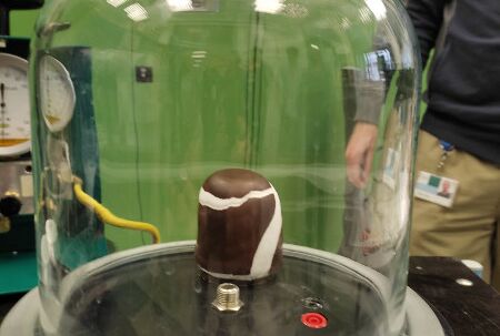 Ab dem Treffpunkt Mannheim Hauptbahnhof, sind wir gemeinsam mit der Straßenbahn 3 zum Roche-Werk Mannheim gefahren. Nach einer kurzen Begrüßung erhielt jede*r einen entsprechenden Besucherausweis, um sich auf dem Werk bewegen zu können. Anschließend machten wir uns gemeinsam auf den Weg zum Bereich der Kältetechnik. Dort warteten die entsprechenden Mitarbeiter mit einem Stationenprogramm auf uns. Es wurden die Stationen „Kupferrohr“, „Hartlöten“ und „Experiment mit Vakuumglocke“ angeboten.