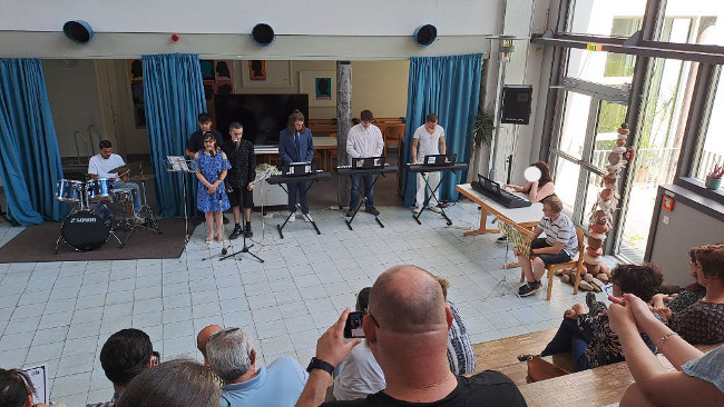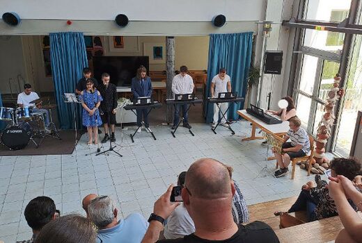 Bei der VAB-Feier wurde jede Schülerin und jeder Schüler mit sehr individuell gewählten Worten von der Klassenlehrerin Frau Hack verabschiedet. Zudem rockten und rappten die AbschlussschülerInnen die Internatsaula mit einem phantastischen, sehr beeindruckenden Bandauftritt.