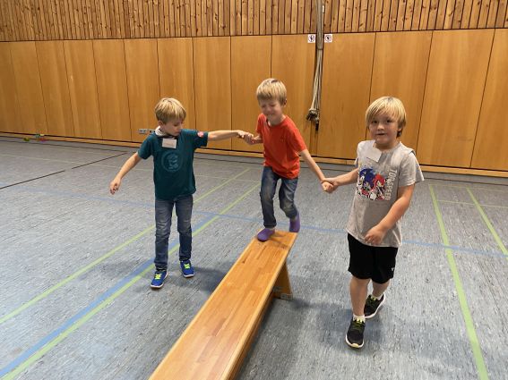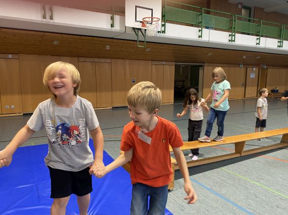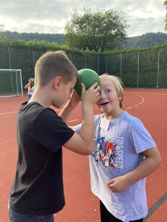 Weiter ging es mit zahlreichen Spielen, die sich Leo und Mauli ausgedacht haben wie beispielsweise „Der Boden ist Lava“ oder dem „Schubkarrenrennen“. Was man sich allerdings unter der „Ballquetsche ins Tor“, den „Gefädelten Kindern“ und den „Baumeisterfüßen“ vorzustellen hat oder wie man am geschicktesten Kinder stapelt, das bleibt der Fantasie der Daheimgebliebenen und den Erinnerungen der Dabeigewesenen überlassen. Im Spaßhaben waren wir in jedem Fall alle Sieger.