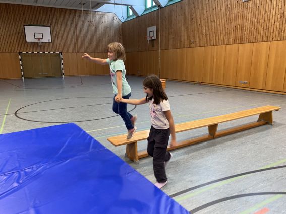 Lachen, Quietschen und Johlen war in der Sporthalle der „Luise“ in Neckargemünd zu hören. Da es Freitag war, konnte das eigentlich nur der Freitagsclub sein, zu dem sich an diesem Freitag, den 13. November neun Grundschulkinder ohne Pech aber dafür mit viel Spaß eingefunden haben. „Alte Hasen“ aber auch einige neue Gesichter waren dabei, als es wenig verheißungsvoll anfing: Hatte doch jemand gleich zu Beginn die Müsliriegel geklaut! Das Tuch mit dem Totenkopf gab den entscheidenden Hinweis und so konnten wir das Diebesgut auf dem Piratenschiff zurückerobern.