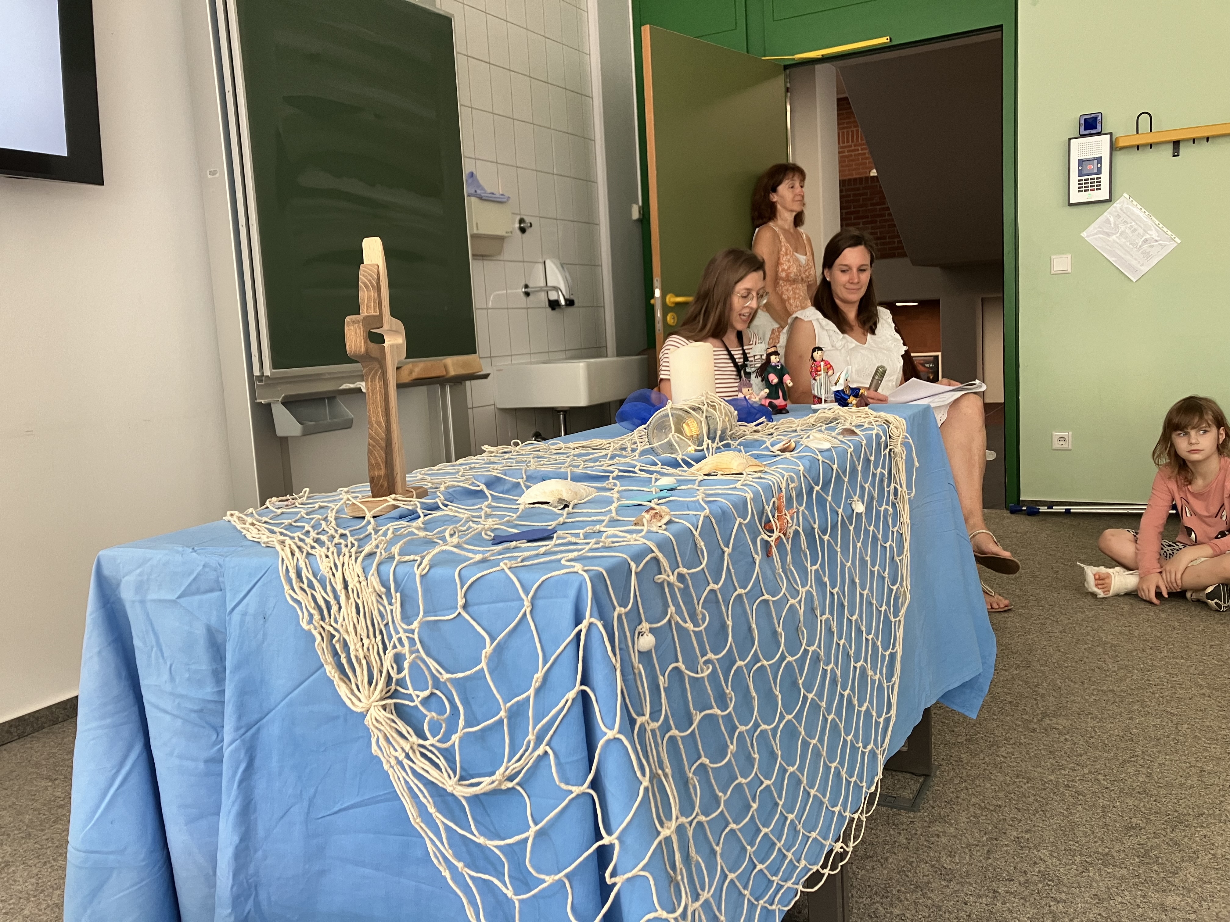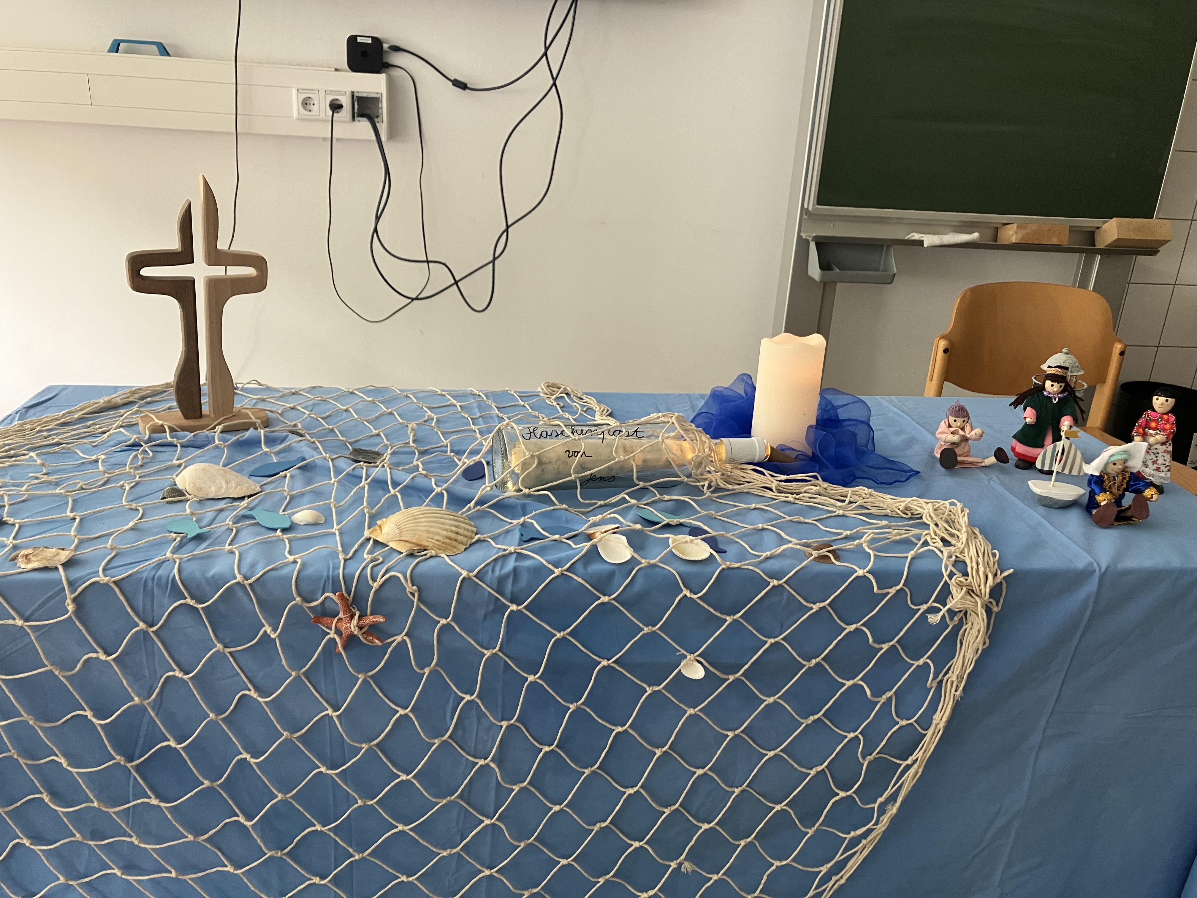 Danach hörten wir gespannt eine Geschichte von Jens, der auf der Suche nach Freunden eine Flaschenpost verschickt.