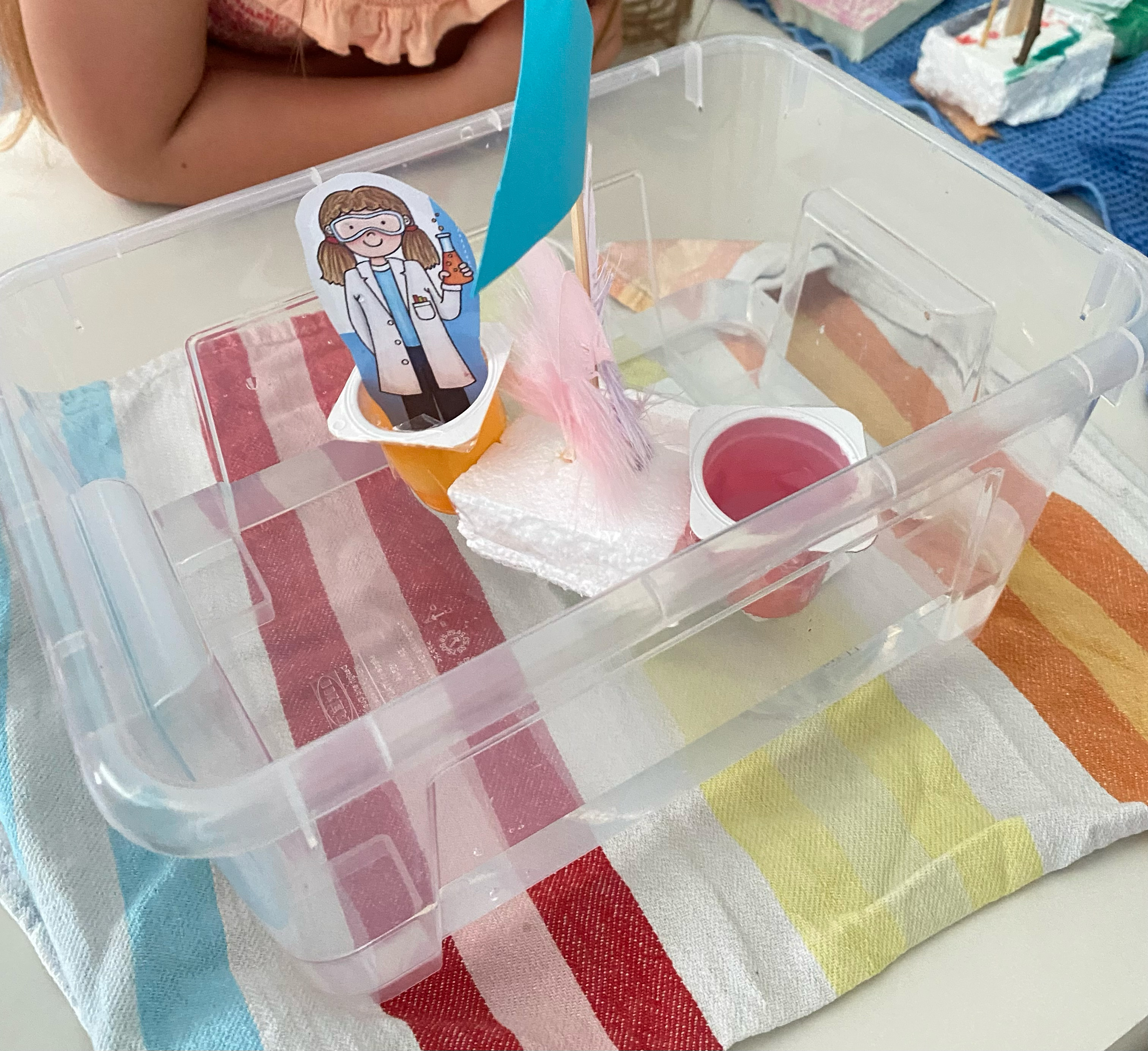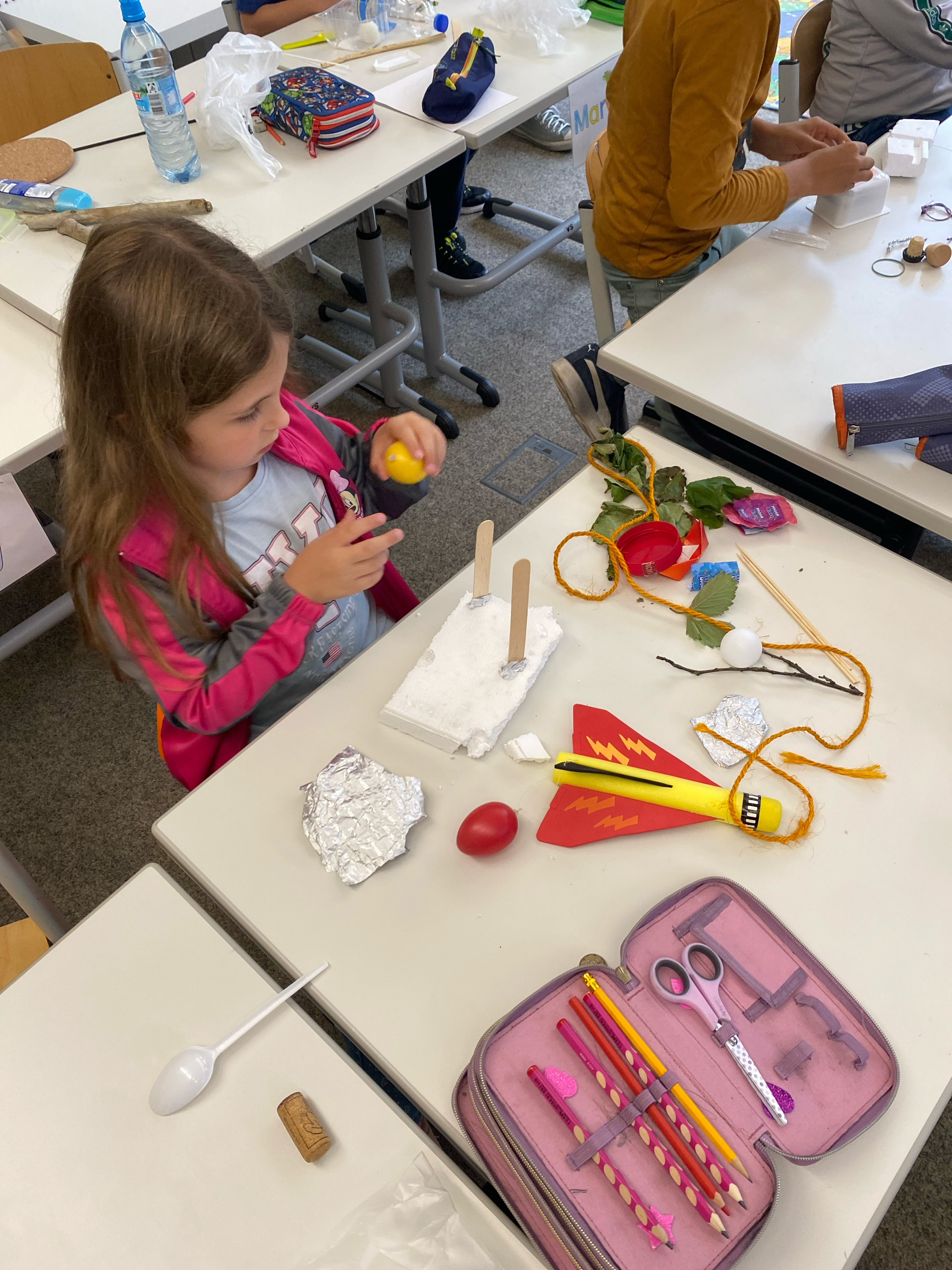 Mithilfe eines Experiments haben die Schülerinnen und Schüler zuvor herausgefunden, welche Gegenstände und Materialien schwimmen und welche sinken. Mit diesem Wissen stand dem Bauen nichts mehr im Weg.
