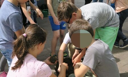 Ein besonderes Highlight für die Schülerinnen und Schüler war das Herstellen eigener Samenbomben aus nassem Lehm und Samenmischungen, die die Kinder mit nach Hause nehmen durften. Jetzt warten sie gespannt darauf, dass aus den kleinen Samen Blumen wachsen!