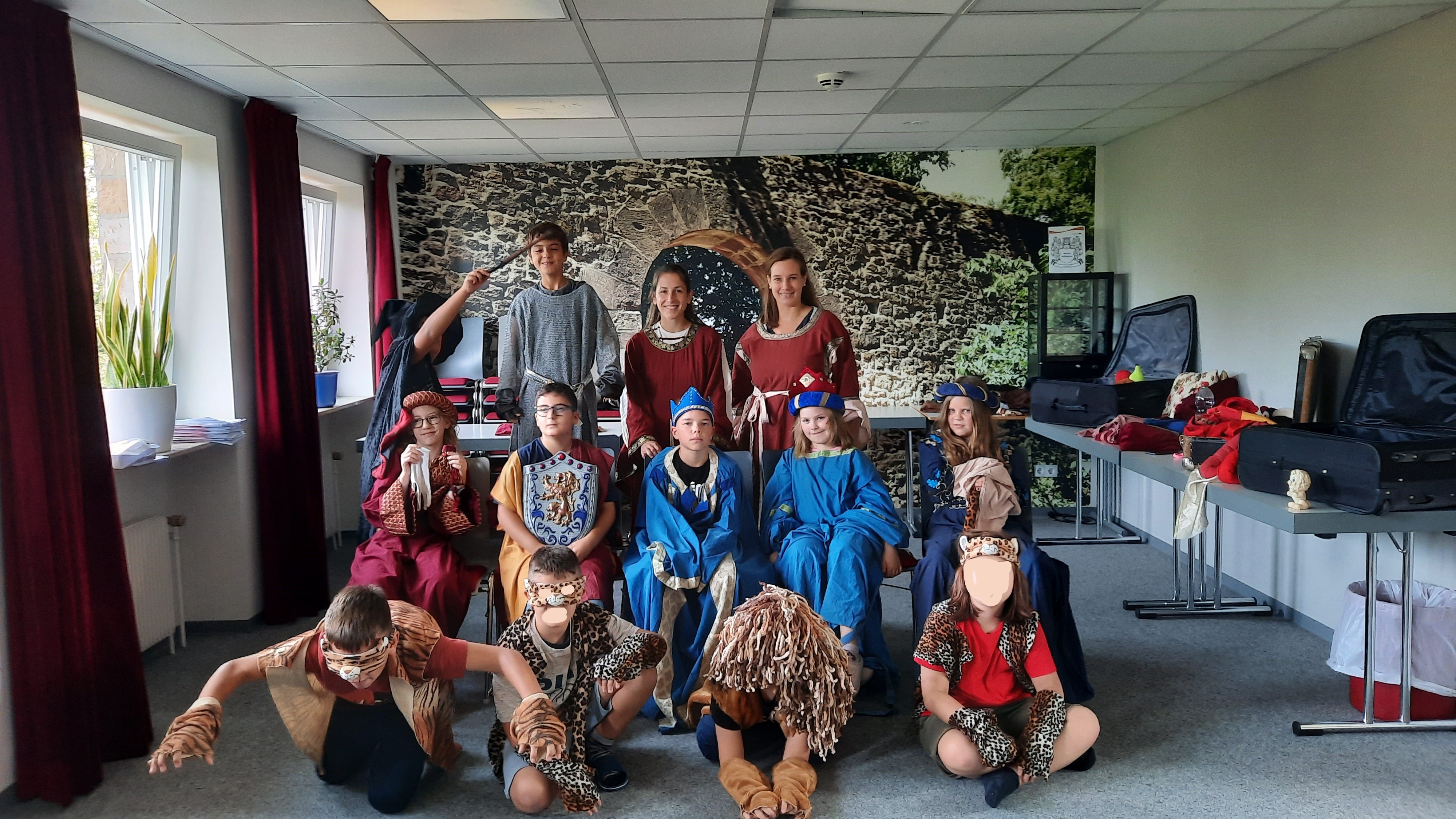 - wir mit Kostümen das Gedicht "Der Handschuh" nachgespielt haben.