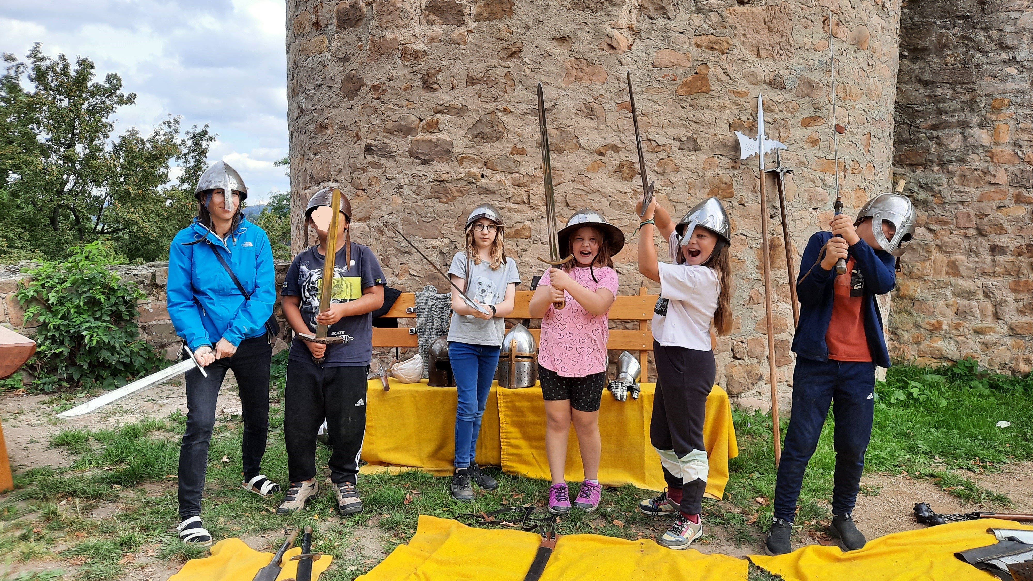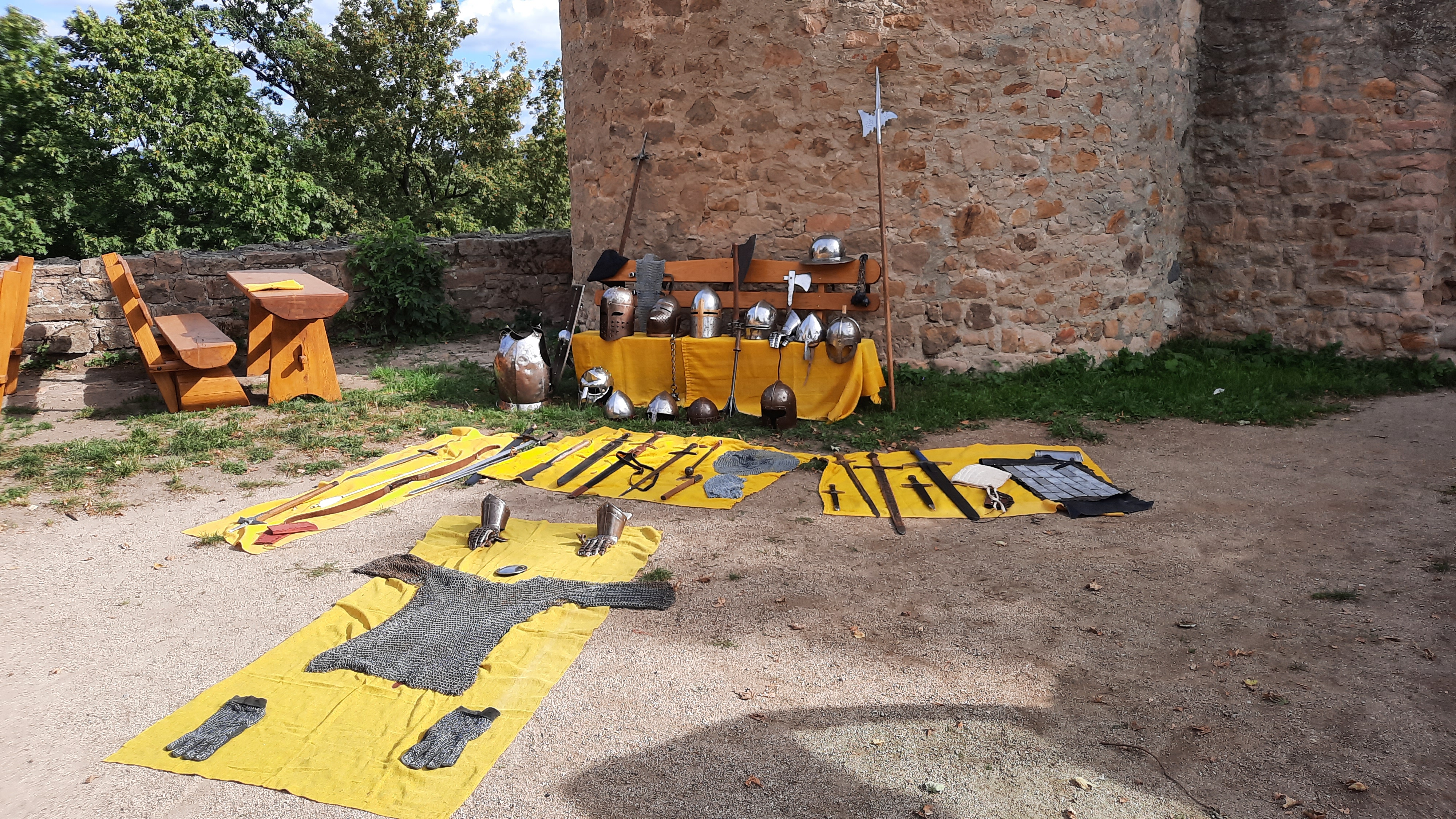 - wir die Waffen der Ritter anprobieren und testen konnten.