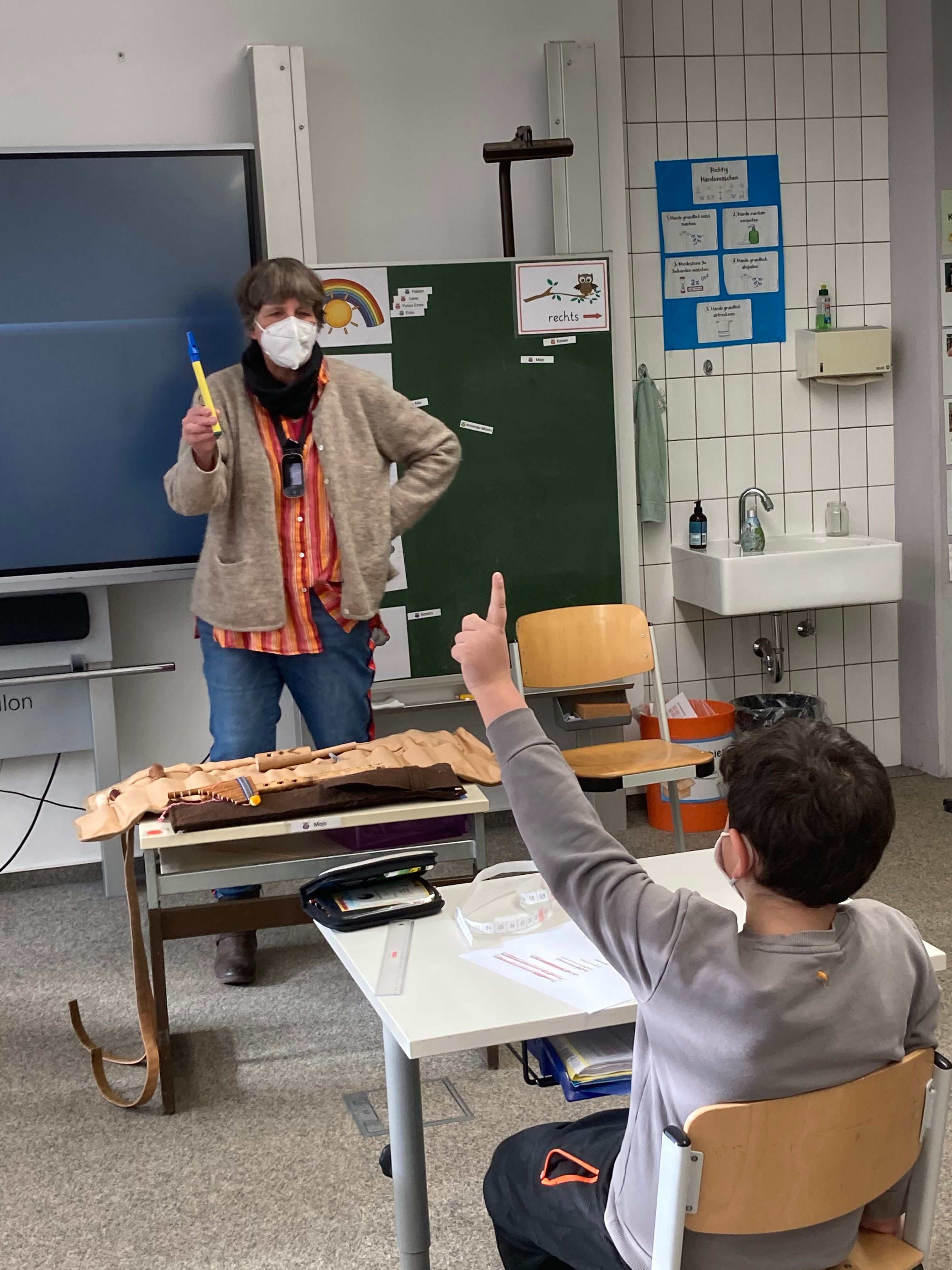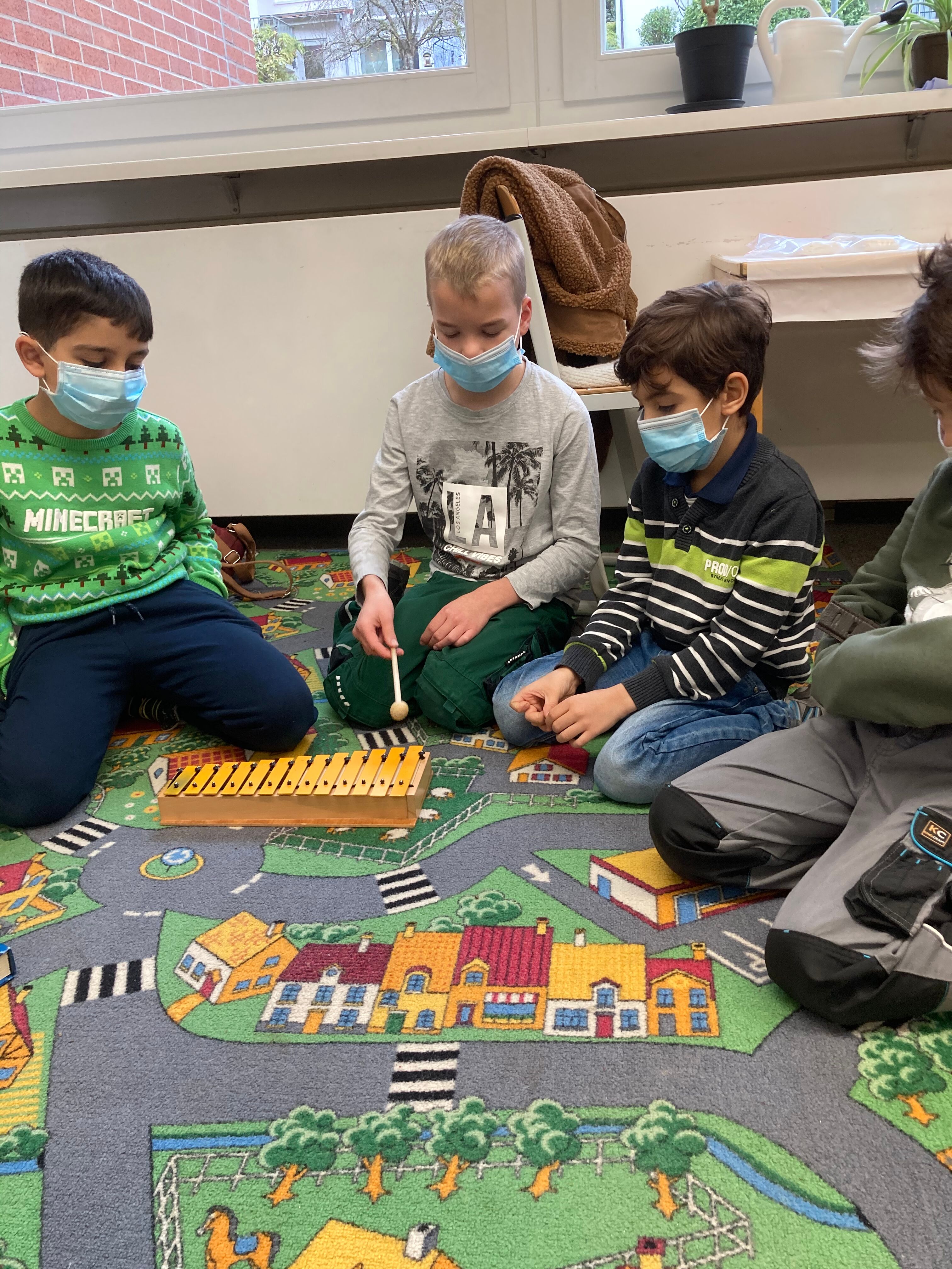 Nach einem bewegungsorientierten Einführungsteil ging es dann ins jeweilige Klassenzimmer, wo jede Woche von externen Musiklehrkräften der Musikschule Neckargemünd ein Instrument vorgestellt oder gemeinsam mit Cajons oder den bunten Klangröhren namens Boomwhackern musiziert wurde. Nach einem kurzen Theorieteil über den Aufbau und die Herkunft des Instruments, durften die Kinder die vorgestellten Instrumente mit Ausnahme der Blasinstrumente sogar ausprobieren.Einige haben so die Lust am Musizieren entdeckt. Einer der Sätze, den man nach den gelungenen Kooperationsstunden zu hören bekam, war: Ich sag meinem Papa, dass ich Akkordeon lernen will.