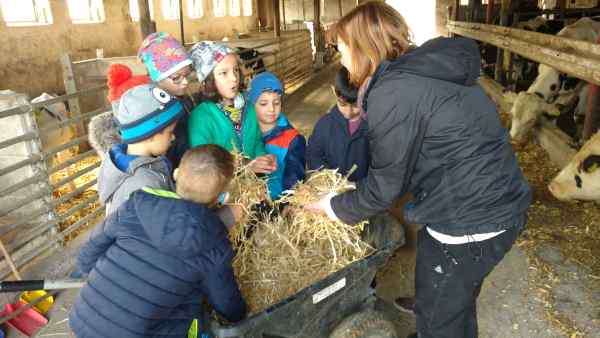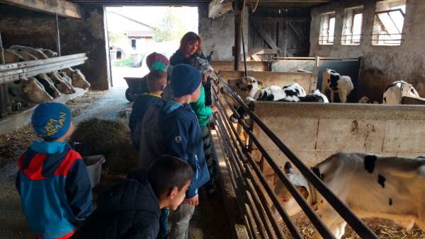 Die erste Klasse des SBBZ Luise von Baden in Heidelberg hat am 02.04.19 einen Ausflug auf den Lernort Bauernhof in Hockenheim zu der Familie Kief gemacht. Dort wurden wir sehr herzlich von Frau Kief empfangen und haben einiges zu sehen, fühlen, riechen, schmecken und natürlich hören bekommen. Wir bekamen sowohl Kälber, Milchkühe als auch Bullen zu sehen und durften die Kälber streicheln und an unserem Finger nuckeln lassen. Besonders begeistert waren wir von dem Melkroboter, mit dem man am Tag pro Kuh 20 Liter Milch abpumpen konnte. Der hat ganz schön lauten Krach gemacht und auch das Muhen der Kühe war ganz schön laut. Außerdem durften wir die Kühe mit Getreideschrot, Gras, Heu, Kraftfutter und Mais füttern. Das hat riesig Spaß gemacht. Beeindruckt waren wir auch von dem Huhn, das uns gezeigt wurde und das wir streicheln durften. Wir haben zum Beispiel gelernt, wie die Ohren des Huhns aussehen und dass die Farbe des Ohrs bestimmt, welche Farbe die Eier haben, die das Huhn legt. Zuletzt durften wir selbst aus dem Rahm der Milch Butter machen. Wir schüttelten und schüttelten, was das Zeug hält. Und endlich konnten wir unsere frische und selbstgemachte Butter auf eine Scheibe Brot schmieren und probieren. Das schmeckte richtig lecker. Und die frische, pasteurisierte Milch von den Kühen auf dem Bauernhof, die wir probieren durften, setzte dem Ganzen nochmal die Krone auf.