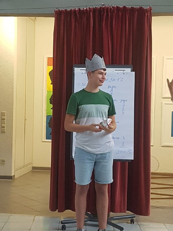 Die Abschiedsfeier für die unsere internen Schüler fand diesmal, aufgrund der Coronavorgaben, leider ohne großes Buffet statt. Doch Spaß und Zeitvertreib gab es jede Menge. In einer vielfältigen Spielechallenge wurde der "Internats-King" gekürt. Es ging darum, in verschiedenen Wettkämpfen möglicht viele Punkte abzuräumen, um sich am Ende die Krone aufsetzen zu können.
