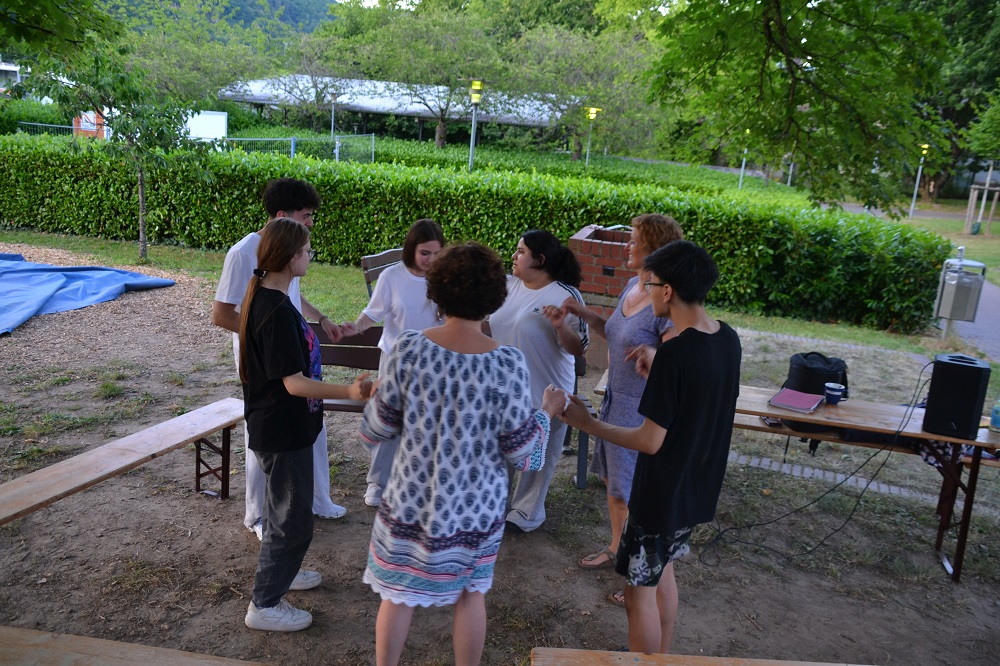 Welche Freude hatten die Schüler/innen des Internats beim Karaoke-Singen in einer lauen Sommernacht im Garten.