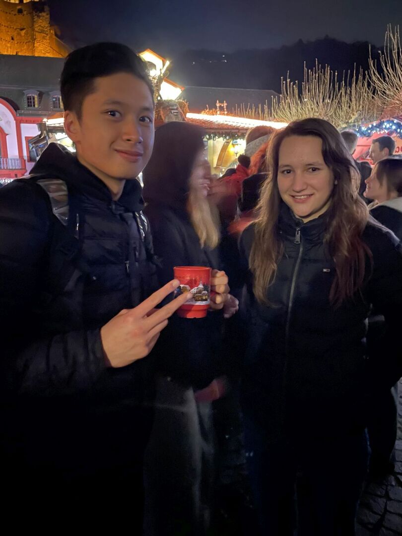 Als gemütlichen Abschluss wärmten wir uns mit einem heißen Punsch und schönen Gesprächen auf dem Weihnachtsmarkt auf. Nach dem ausgelassenen Abend auf dem Weihnachtsmarkt nahmen wir die Bahn nach Neckargemünd und wir stillten unseren Hunger mit leckeren Sandwiches.
