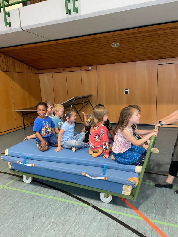 Aus den kleinen Käfern des Schulkindergartens wurden durch das Feuerwehrprojekt ganz große Feuerwehrfrauen und -männer. In einer Feuerwehrturnstunde wurde fleißig der Einsatz der Feuerwehr geübt. Unter Hindernissen hindurch robben, Feuerwehrstangen hinunterrutschen - der Mattenwagen diente als schnelles Feuerwehrauto, das uns zum Einsatzort brachte.
