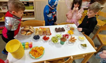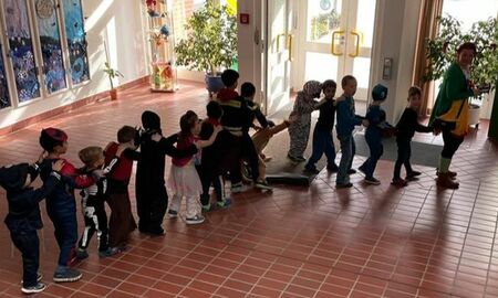 Dieses Jahr konnte endlich wieder richtig Fasching gefeiert werden, also hieß es auch bei uns auf der Faschingsparty im Schulkindergarten Hajo! Mit viel lauter Musik ging es mit einer Polonaise durch das ganze Schulhaus. Na klar wurde viel getanzt, gespielt und gelacht, inklusive Modenschau und Luftballontanz. Auch Schaumküsse und Salzbrezeln essen, ohne die Hände zu benutzen (!), sorgte für gute Stimmung und ebenso das anschließende kleine Faschingsbuffet. Und natürlich waren richtig tolle, kreative Verkleidungen bei Groß und Klein dabei: wir freuen uns schon wieder auf nächstes Jahr!