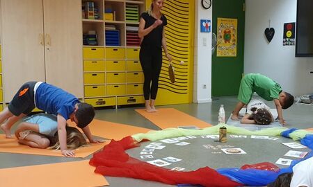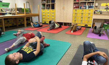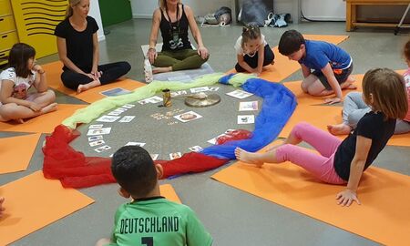 Endlich konnten die Kinder des Schulkindergartens eine Woche lang nach Herzenslust ihrer Lieblingsbeschäftigung nachgehen und sich bewegen. Bei wunderbarem Wetter steckten sie alle Energien in Chi Gong, Rückenschulung, Yoga, Schwimmen, die Spaßolympiade, den Hindernisparcours, Fahrrad fahren, klettern, tanzen und wandern. Chi Gong und Yoga waren täglich im Angebot. Wir wurden von zwei Yogalehrerinnen von Damalimia Yoga Gauangelloch unterstützt. Die beiden Lehrerinnen, die unter anderem auch auf Kinderyoga spezialisiert sind, sorgten für viel Bewegungsfreude, aber auch für Entspannung und Beweglichkeit.