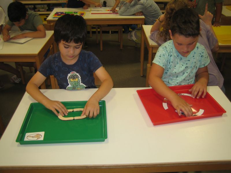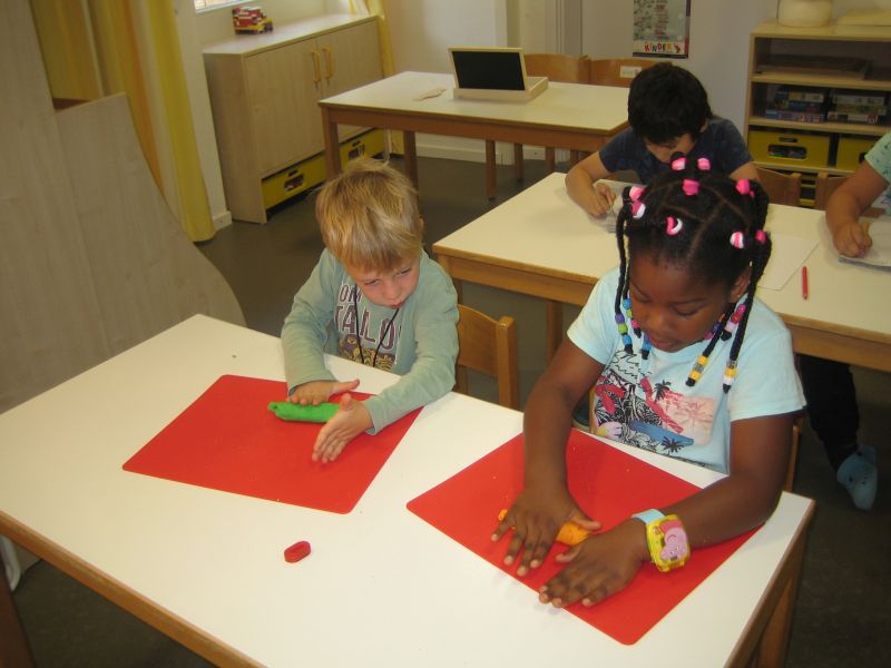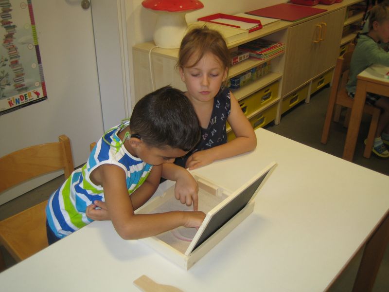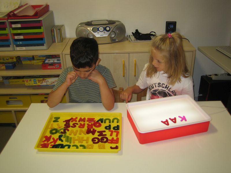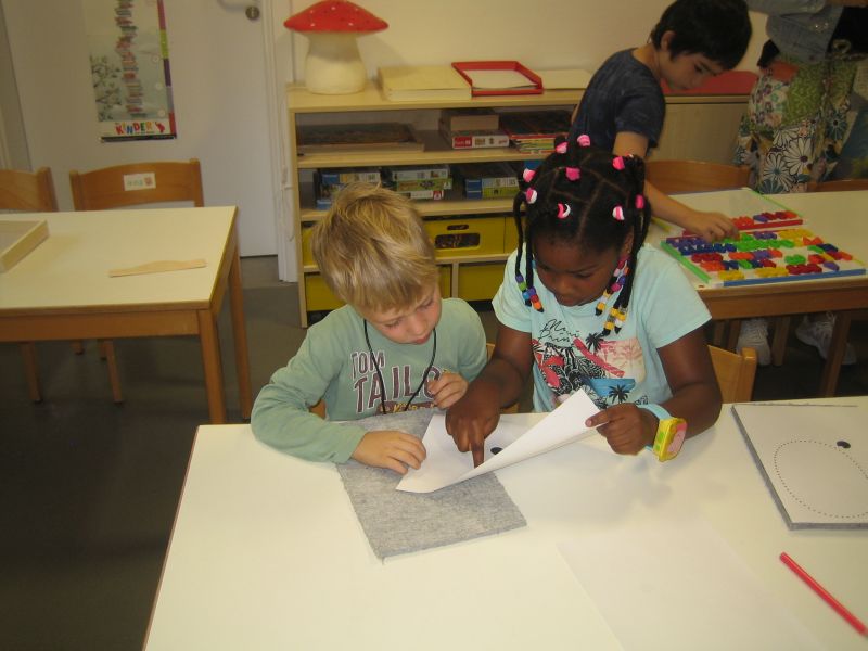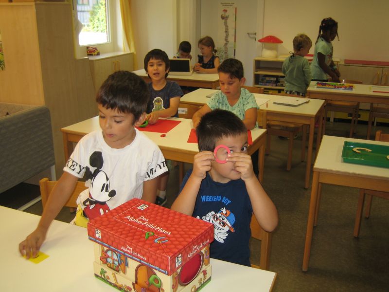 „Guck mal diese Biene da! Summ, summ...“ In den letzten Wochen konnte man diesen Ohrwurm im gesamten Schulkindergarten hören. Dass wir alle voneinander lernen können, haben die Kinder der Tigerenten- und Freundegruppe beim gemeinsamen Singen erfahren. Die Tigerenten zeigten den Freunden viele verschiedene Gebärden zu dem Bienenlied. Nun haben die Vorschulkinder der Freundegruppe die Tigerenten zu einer Deutschstunde eingeladen. Beim Stationenlernen konnten die Kinder mit ihrem Teampartner den Buchstaben O erkunden. Wir haben Wörter, die mit O anfangen auf Aufnahmeklammern gesprochen, den Buchstaben ertastet, geschrieben, geprickelt, geknetet, gepuzzelt und noch vieles mehr. Am Ende dieser Kooperationsstunde waren sich alle einig: Gemeinsam lernen macht Spaß!