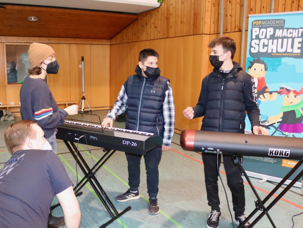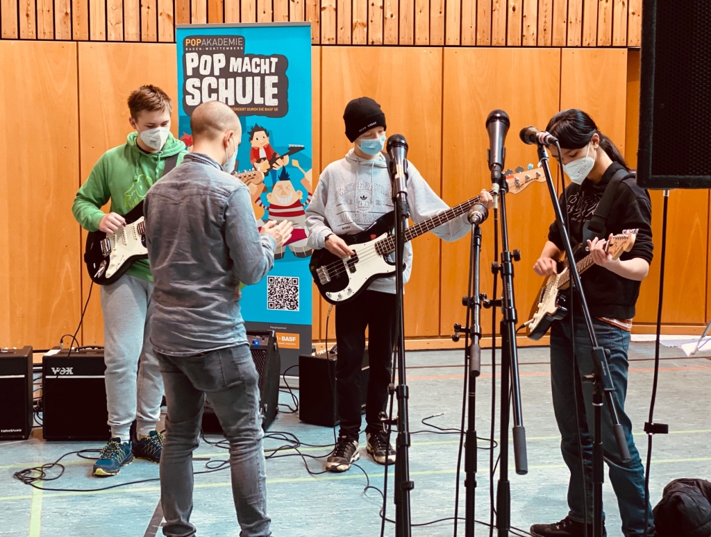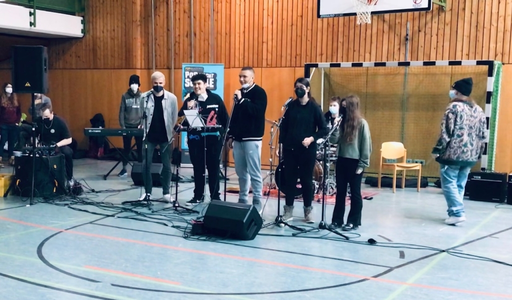 Was aufgrund der Coronapandemie zunächst verschoben werden musste, konnte nun am 14. und 15. Februar endlich stattfinden: Die Popakademie kam mit einem Lieferwagen voller Instrumente und Equipment zu uns zu Besuch nach Neckargemünd!