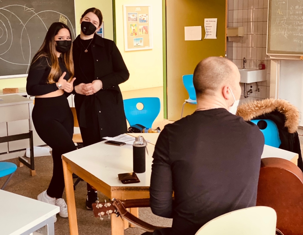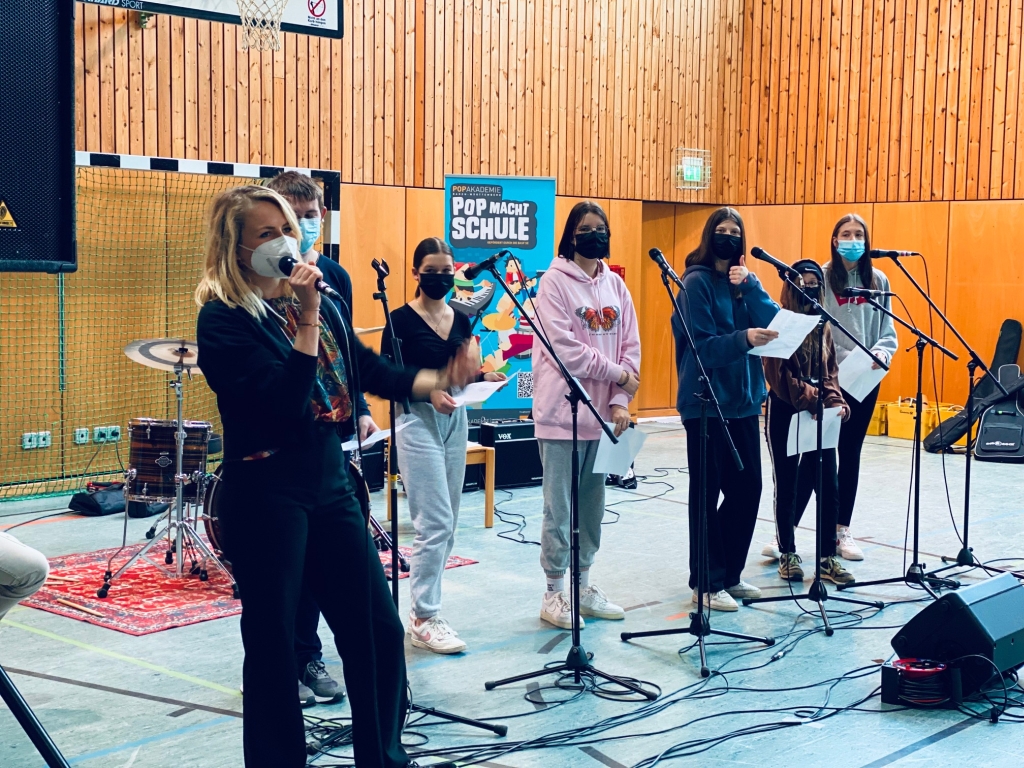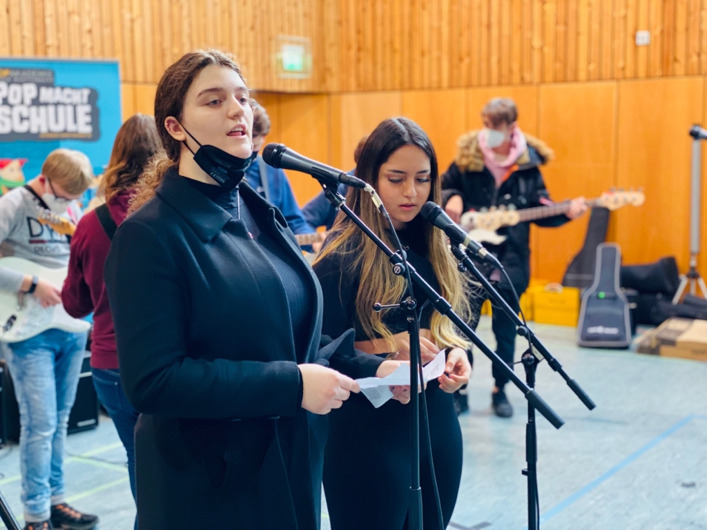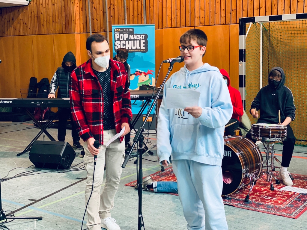 Über zwei Jahre ist es her, dass wir uns bei der Popakademie Mannheim für deren Schulprojekt „Pop macht Schule“ beworben hatten. Die Schüler*innen der Schulband hatten ein Plakat gebastelt und Texte dazu geschrieben, warum sie Musik lieben und warum die Popakademie ausgerechnet zu uns an die Luise kommen soll. Damit hatten sie Erfolg, wir wurden tatsächlich angenommen!