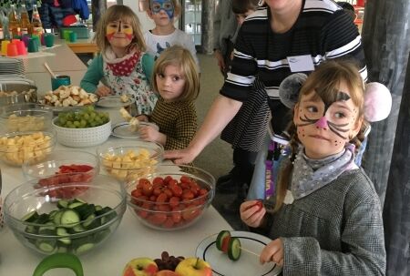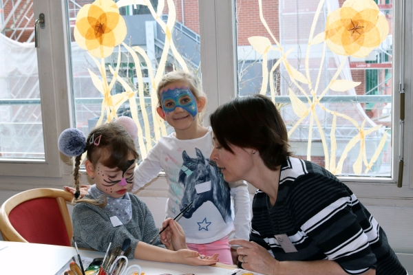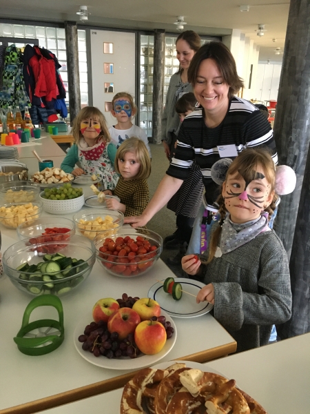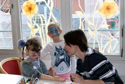 Hierbei erwiesen sich drei unserer älteren Schülerinnen und Schüler sowie ein Student als Experten, die von ihrem Alltag und dem Einsatz ihrer Höranlagen berichteten. Die Ambivalenz beim Einsatz der Höranlage im Schulalltag wurde durch die Rückmeldungen der Teilnehmenden bestätigt. Einerseits möchten die Schülerinnen und Schüler keine besondere Rolle in der Klasse einnehmen, andererseits erleichtert die Höranlage das Hörverstehen. Die Berichte über die erfolgreichen Bewältigungsstrategien der Älteren und das Gefühl verstanden zu werden, waren wertvoll und bestärkend für die Beteiligten. Währenddessen vergnügten sich die ganz jungen Kinder beim Kinderschminken und gemeinsamen Spielen.