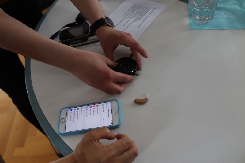 Endlich konnte unsere Veranstaltung zu diesem Thema in Präsenz stattfinden. Die Pädakustikerin Frau Yakar präsentierte unseren KollegInnen die neusten Hörgeräte und weitere Hörtechnik für das Klassenzimmer und den beruflichen Kontext. Neben den Infos zur neuesten Entwicklung konnten die technischen Geräte unmittelbar erprobt werden. Einen hohen Stellenwert hat inzwischen das Smartphone als z.B. Mikrofon, Audioquelle und Fernbedienung für die Hörhilfen. Abschließend fand ein Austausch über die erfolgreiche Antragsstellung der Hörtechnik statt.